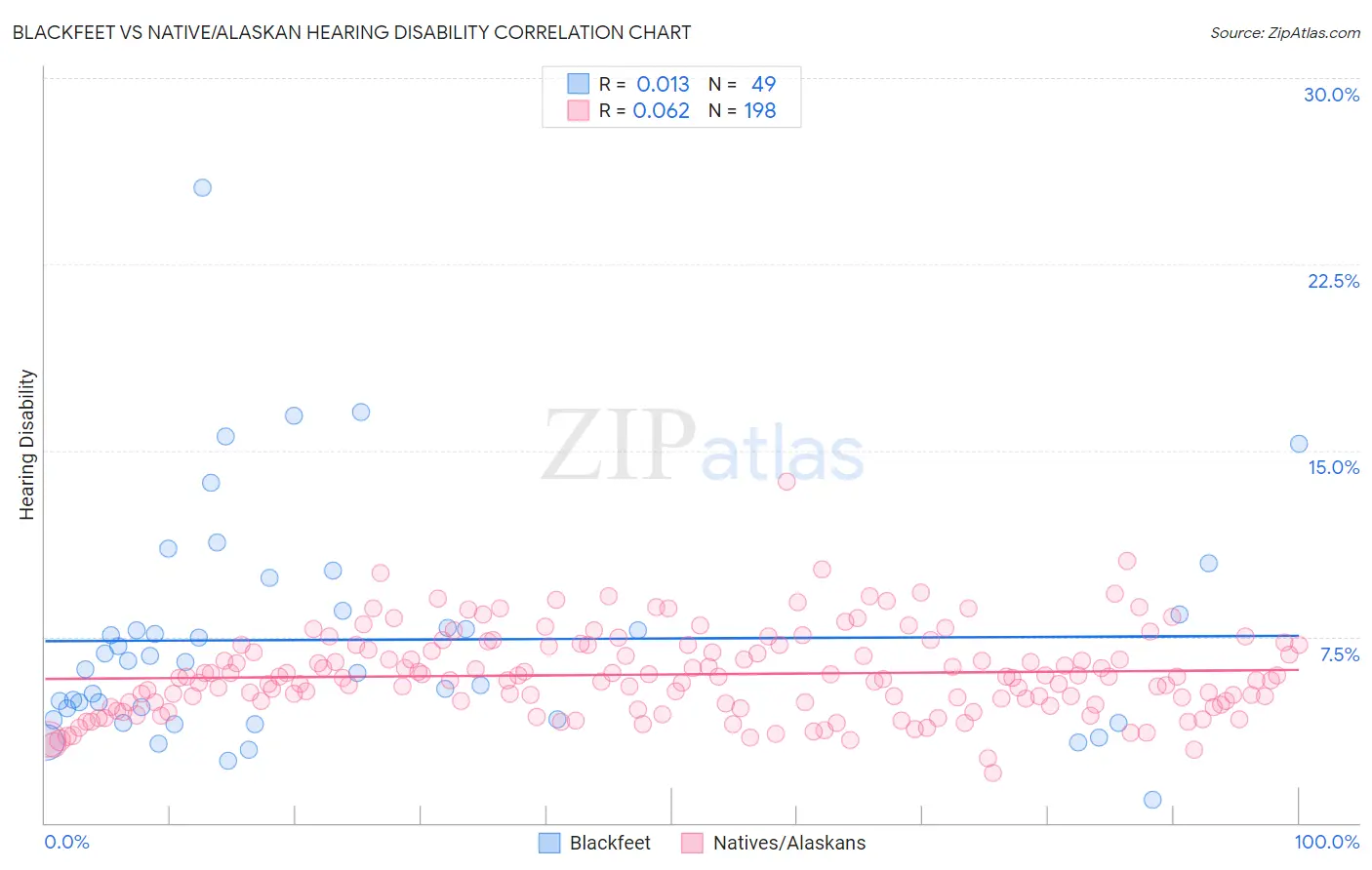 Blackfeet vs Native/Alaskan Hearing Disability Correlation Chart