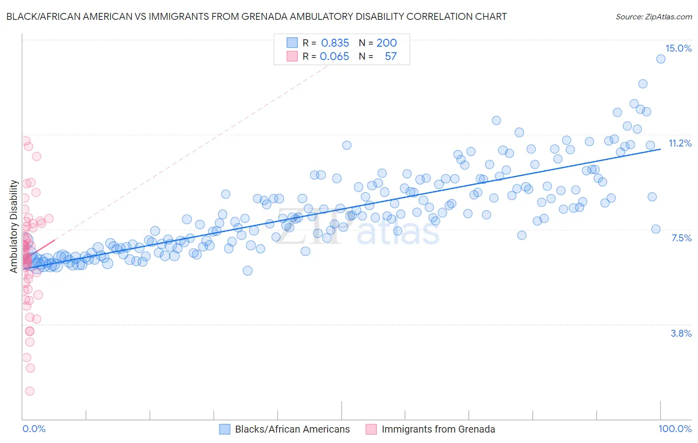 Black/African American vs Immigrants from Grenada Ambulatory Disability Correlation Chart