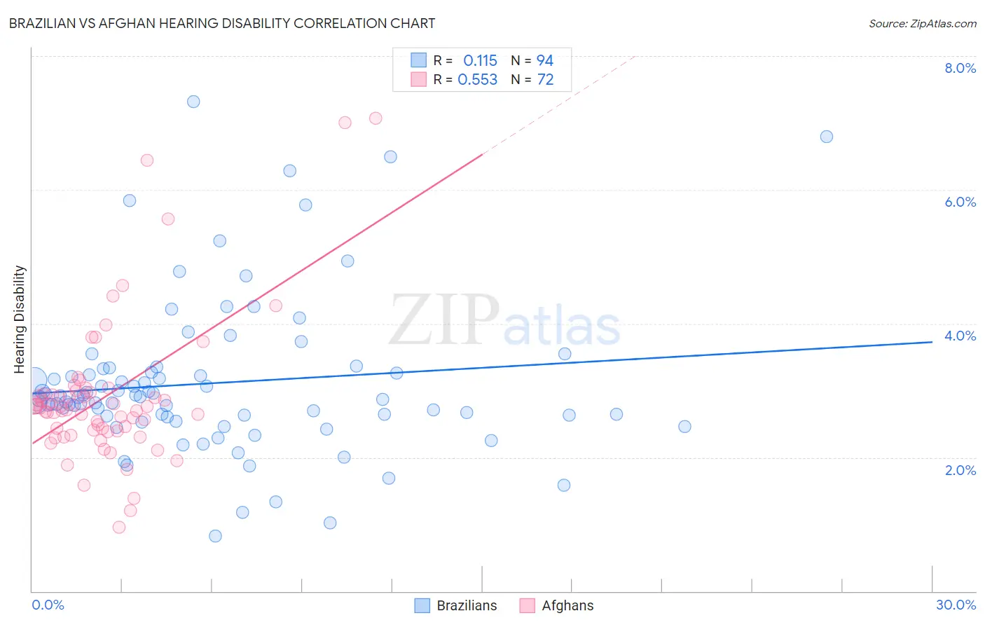 Brazilian vs Afghan Hearing Disability Correlation Chart