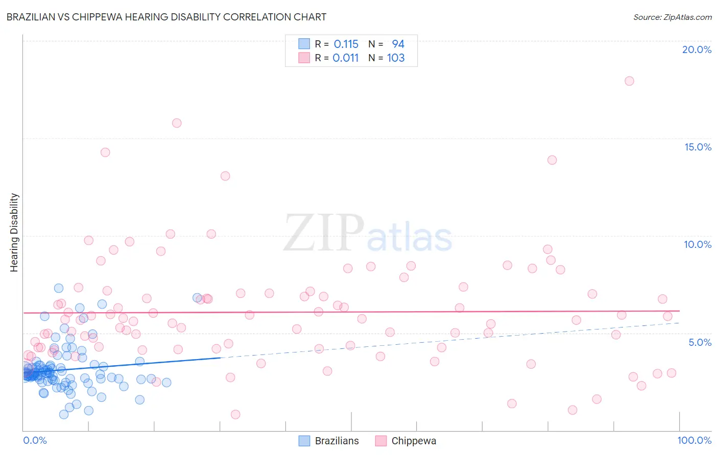 Brazilian vs Chippewa Hearing Disability Correlation Chart