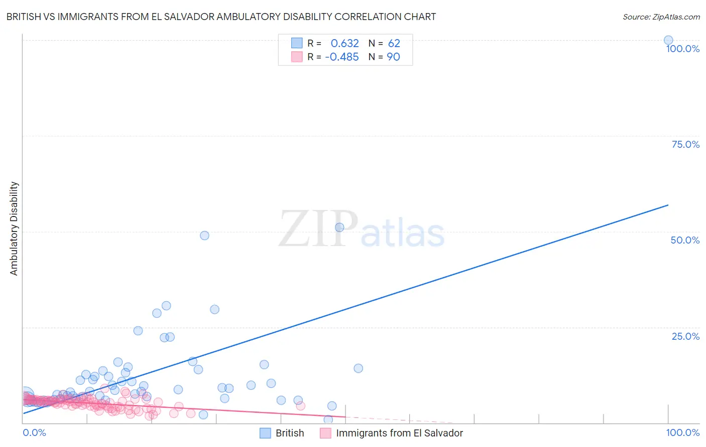 British vs Immigrants from El Salvador Ambulatory Disability Correlation Chart