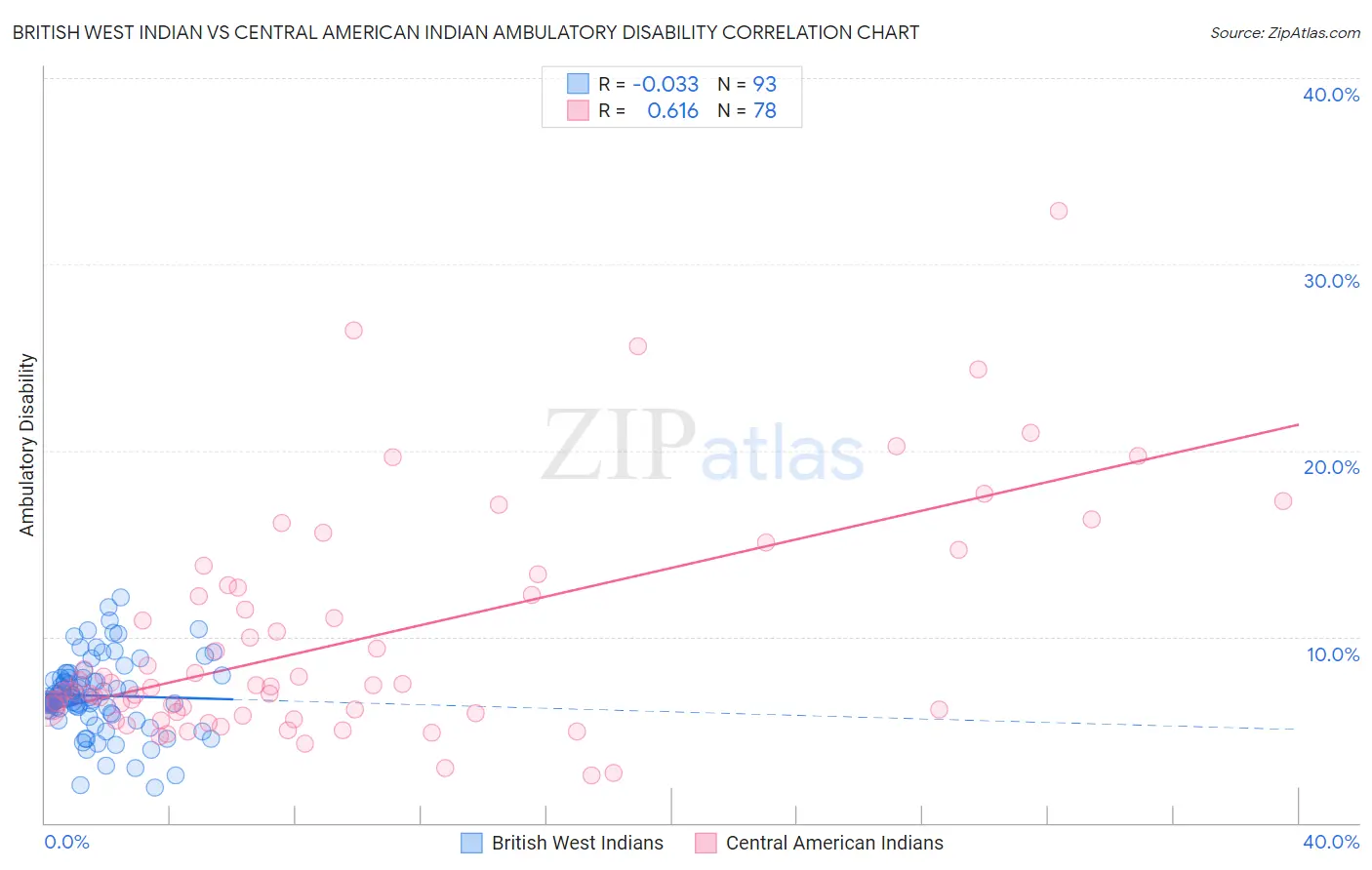 British West Indian vs Central American Indian Ambulatory Disability Correlation Chart