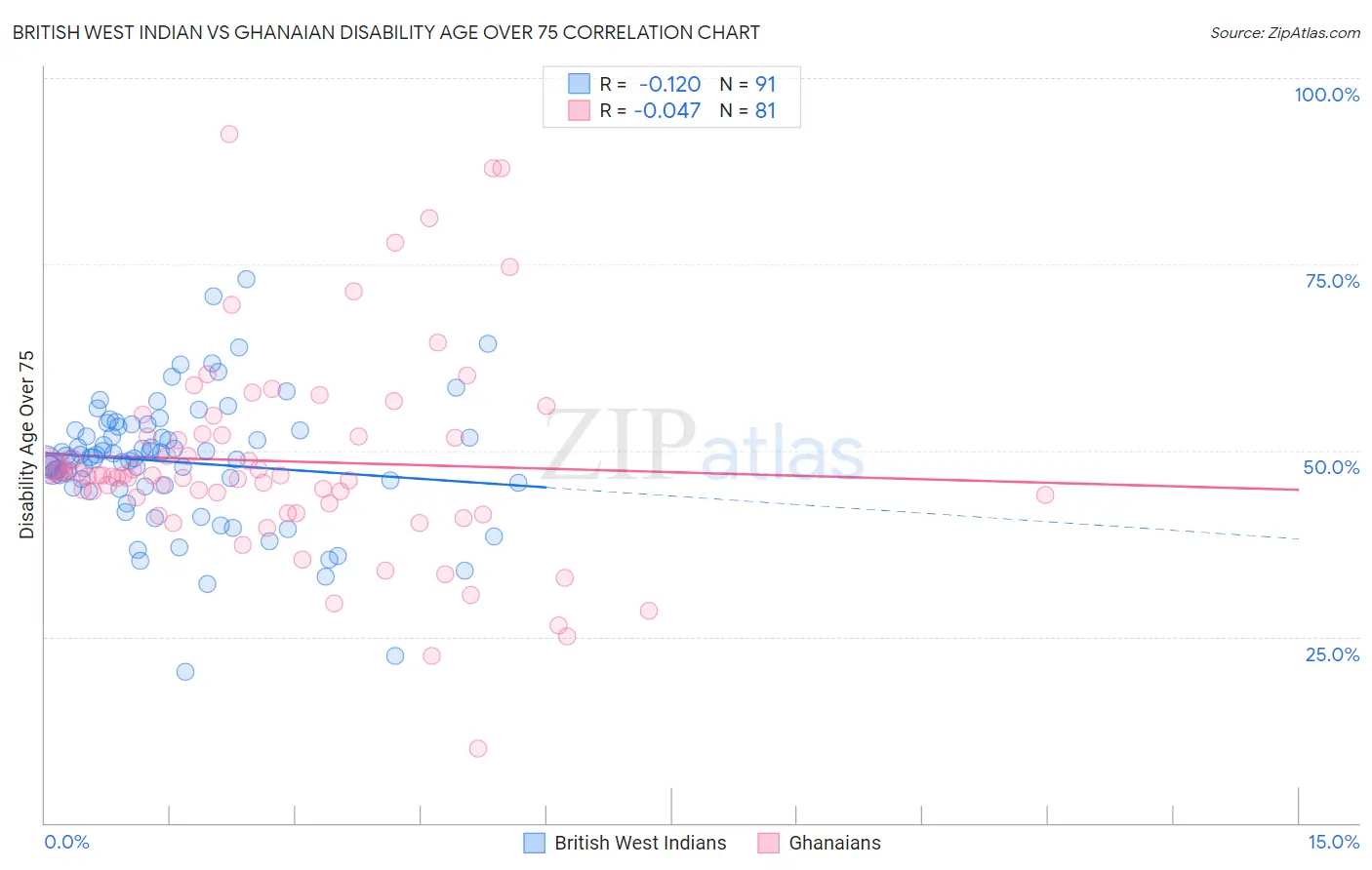 British West Indian vs Ghanaian Disability Age Over 75 Correlation Chart