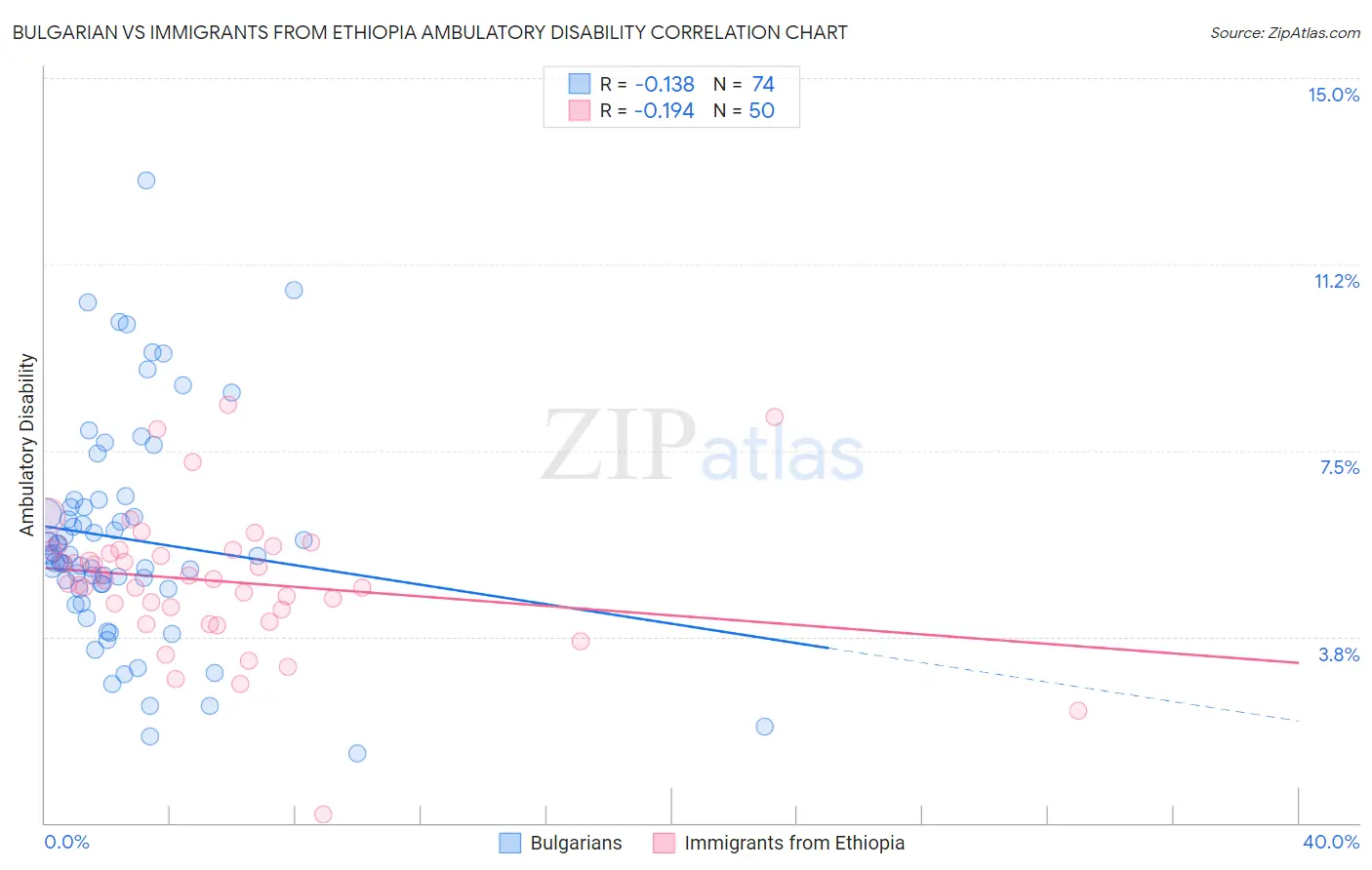 Bulgarian vs Immigrants from Ethiopia Ambulatory Disability Correlation Chart