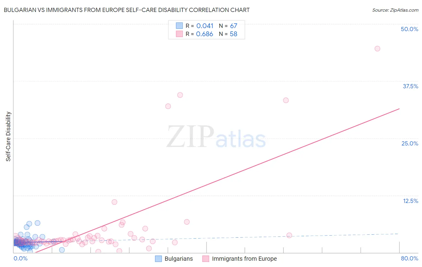 Bulgarian vs Immigrants from Europe Self-Care Disability Correlation Chart
