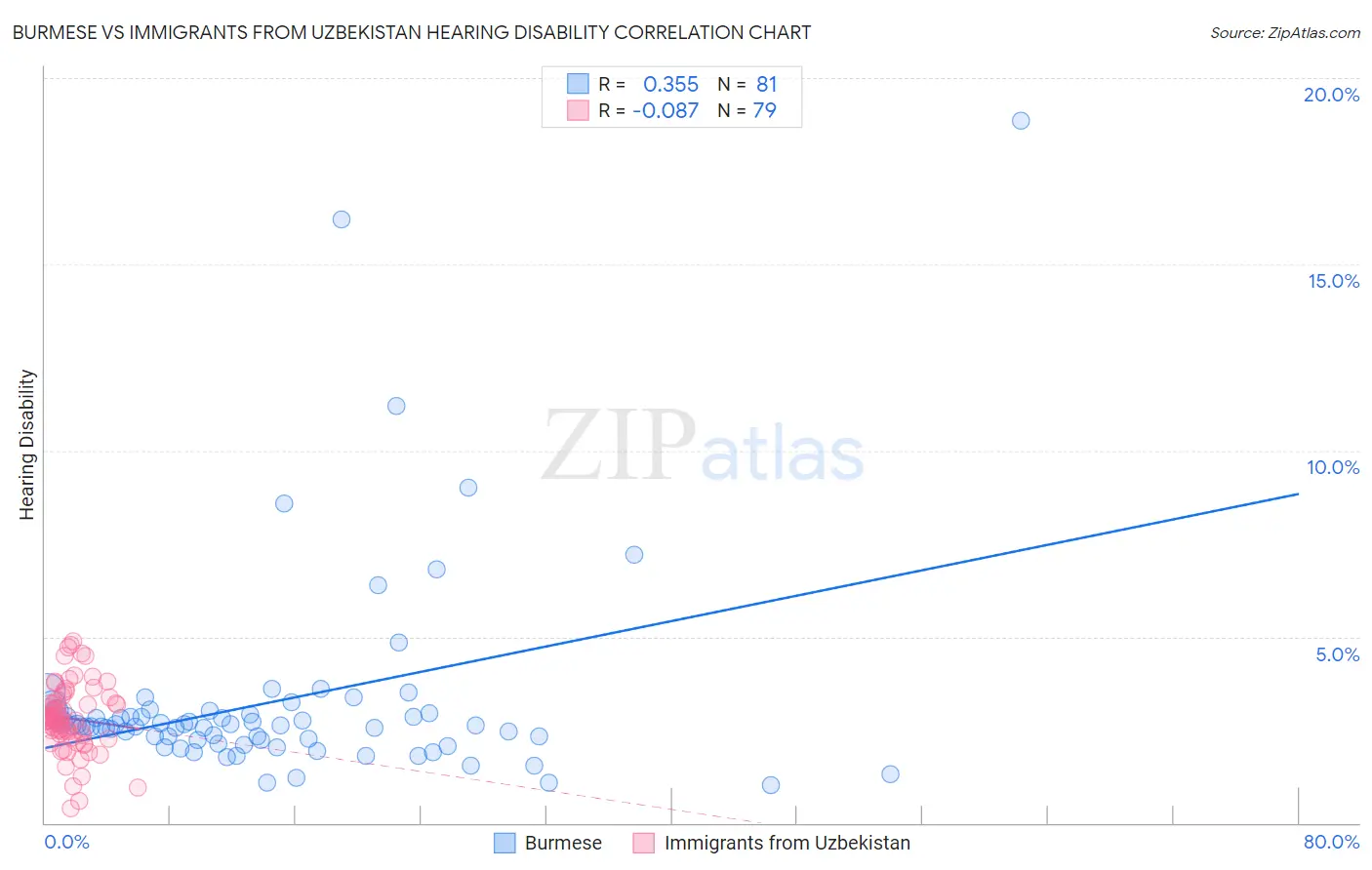 Burmese vs Immigrants from Uzbekistan Hearing Disability Correlation Chart