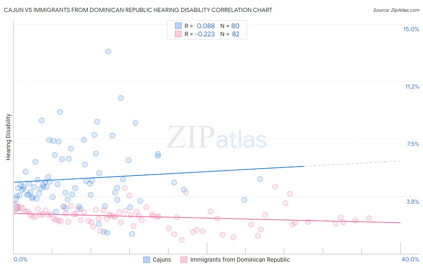 Cajun vs Immigrants from Dominican Republic Hearing Disability Correlation Chart