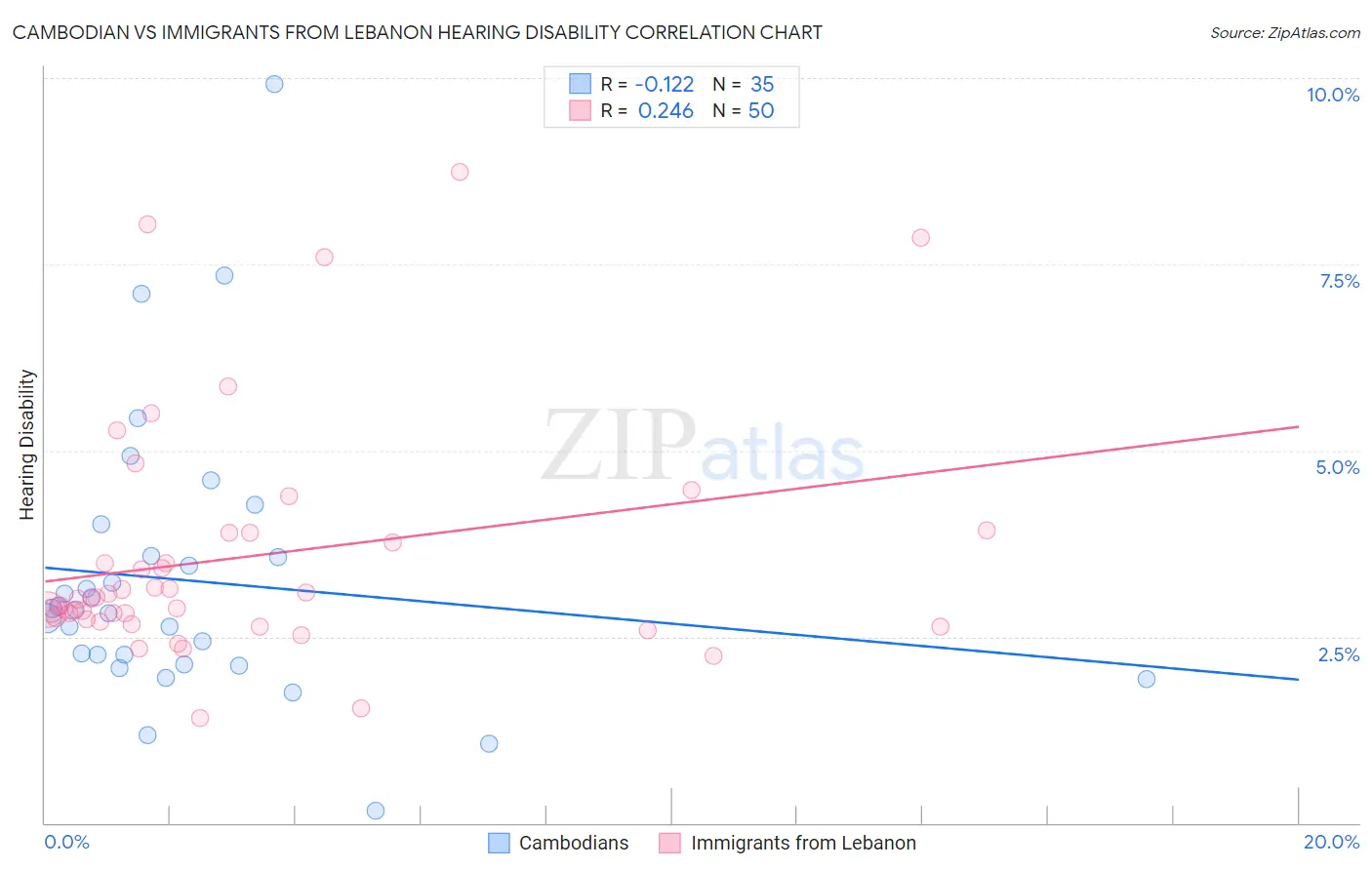 Cambodian vs Immigrants from Lebanon Hearing Disability Correlation Chart
