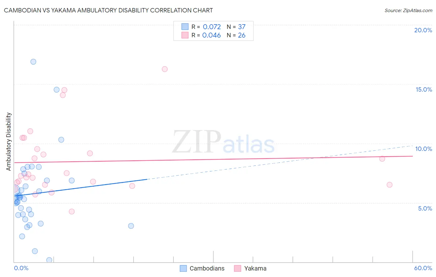 Cambodian vs Yakama Ambulatory Disability Correlation Chart