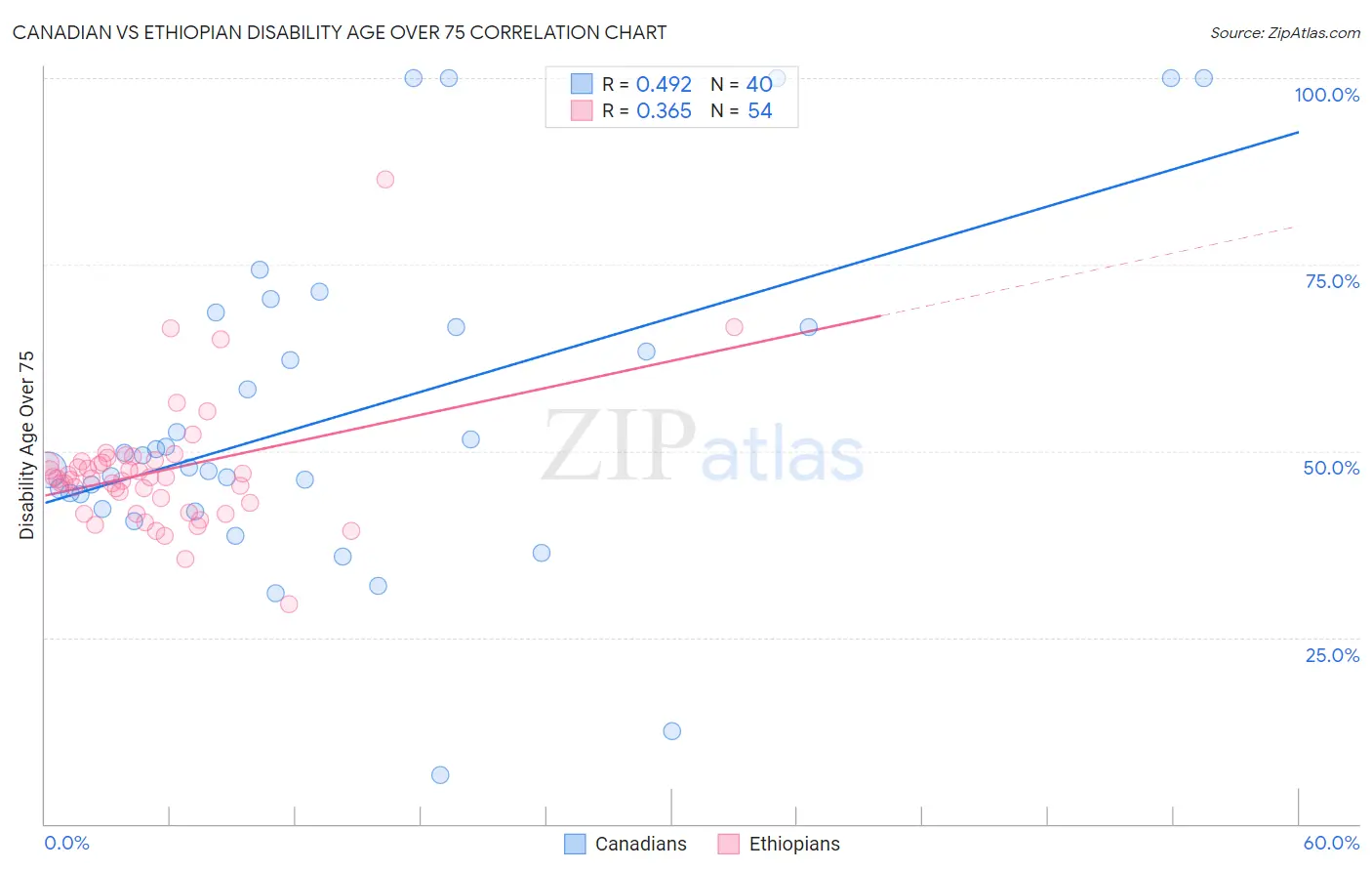 Canadian vs Ethiopian Disability Age Over 75 Correlation Chart