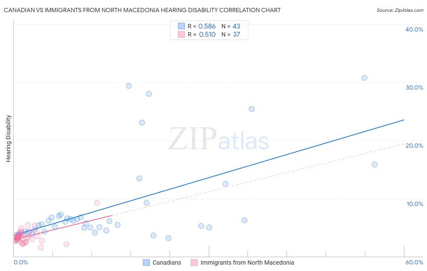 Canadian vs Immigrants from North Macedonia Hearing Disability Correlation Chart