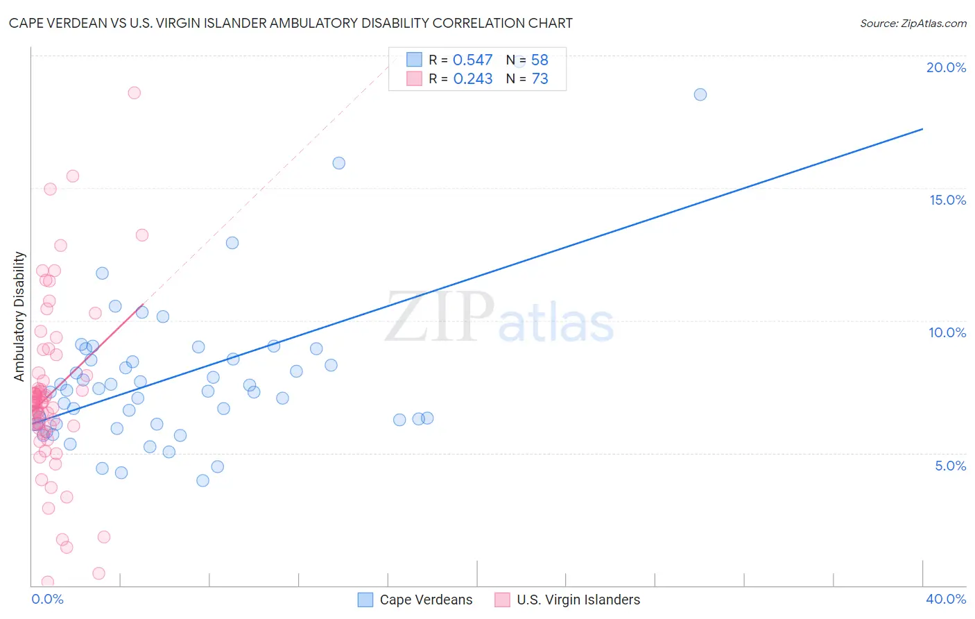 Cape Verdean vs U.S. Virgin Islander Ambulatory Disability Correlation Chart