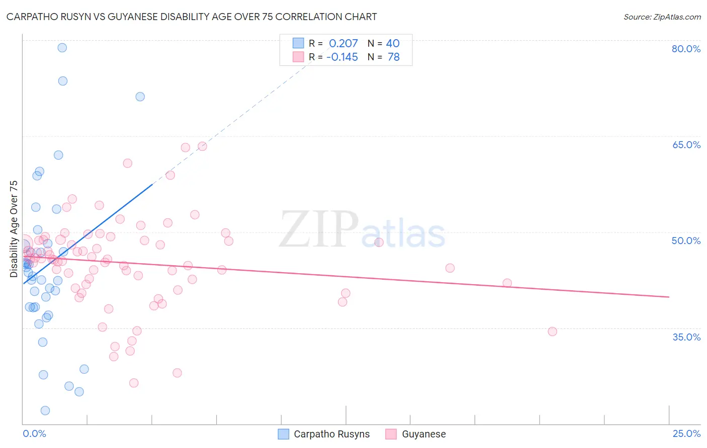 Carpatho Rusyn vs Guyanese Disability Age Over 75 Correlation Chart