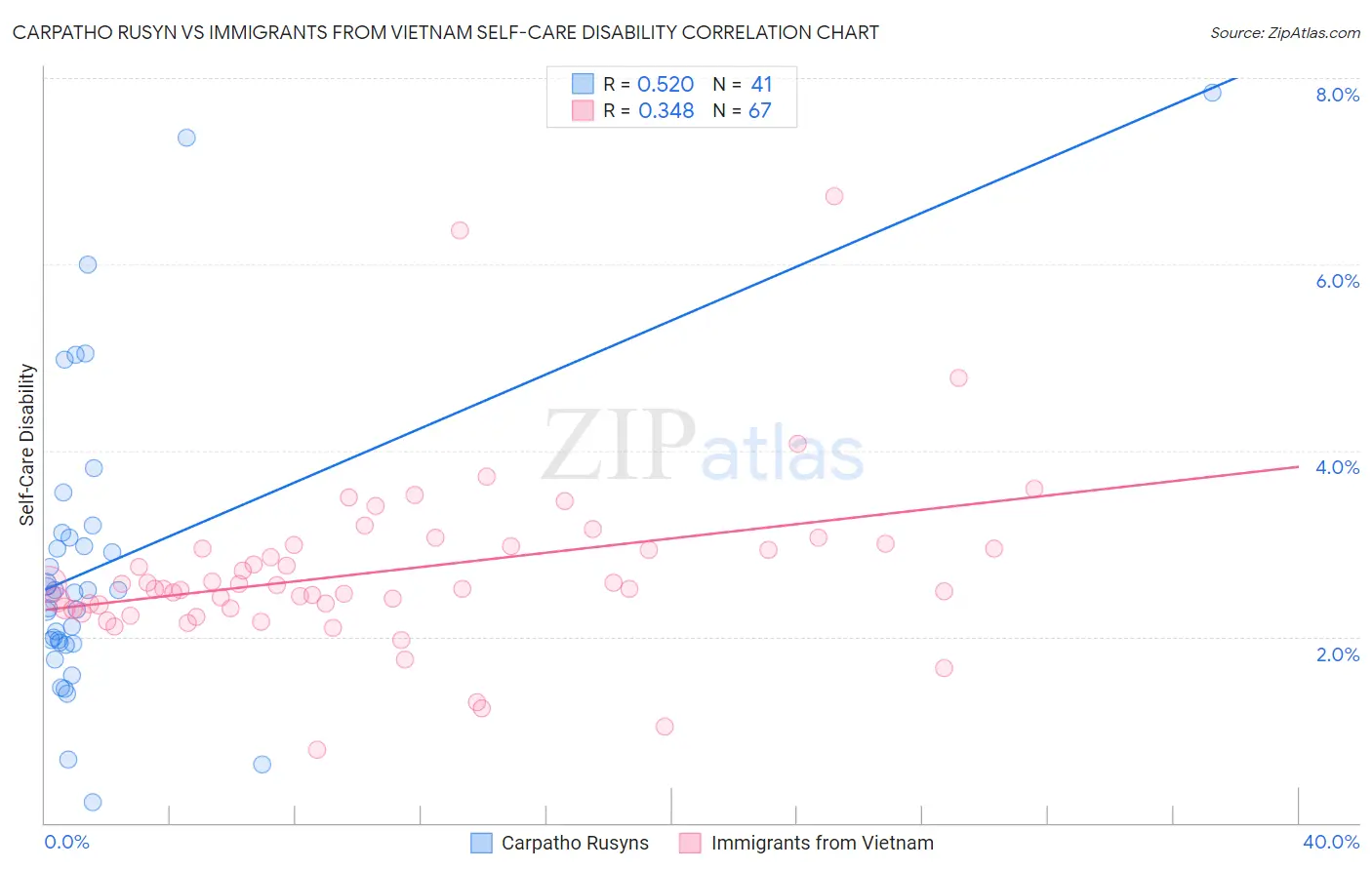 Carpatho Rusyn vs Immigrants from Vietnam Self-Care Disability Correlation Chart