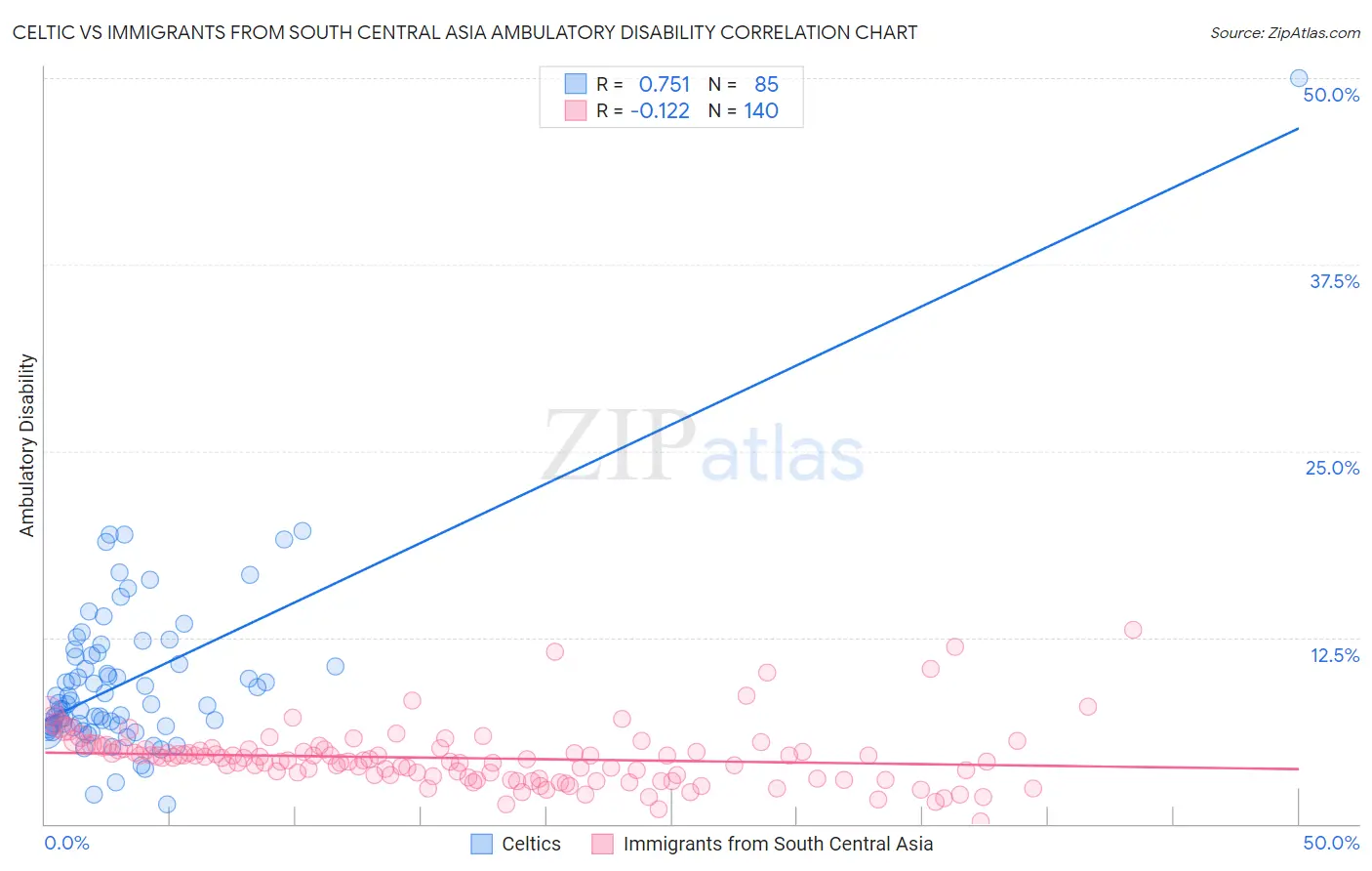 Celtic vs Immigrants from South Central Asia Ambulatory Disability Correlation Chart