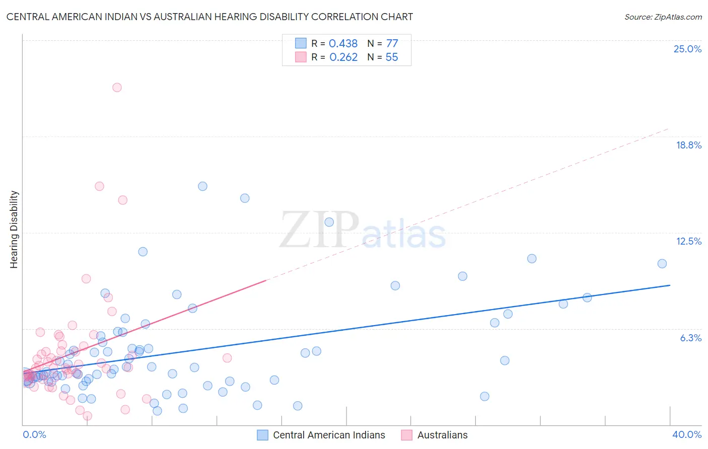 Central American Indian vs Australian Hearing Disability Correlation Chart