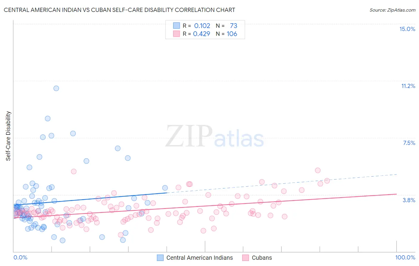 Central American Indian vs Cuban Self-Care Disability Correlation Chart