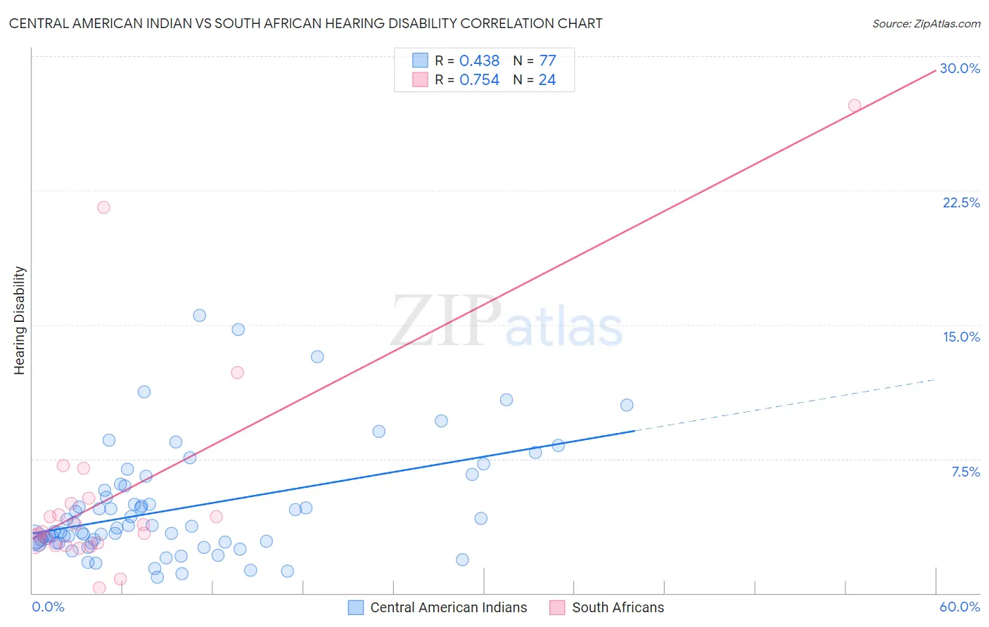 Central American Indian vs South African Hearing Disability Correlation Chart