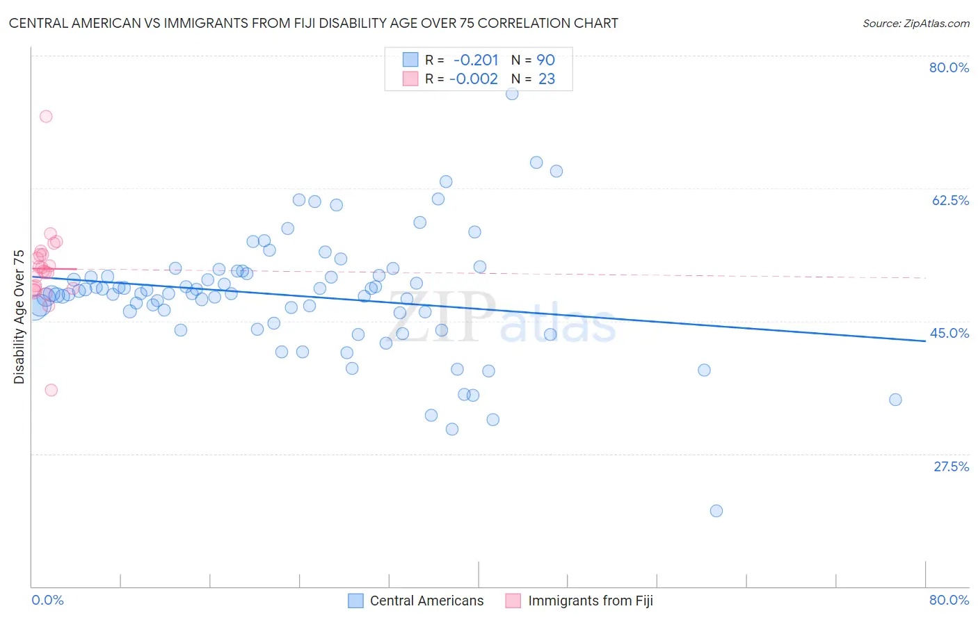 Central American vs Immigrants from Fiji Disability Age Over 75 Correlation Chart