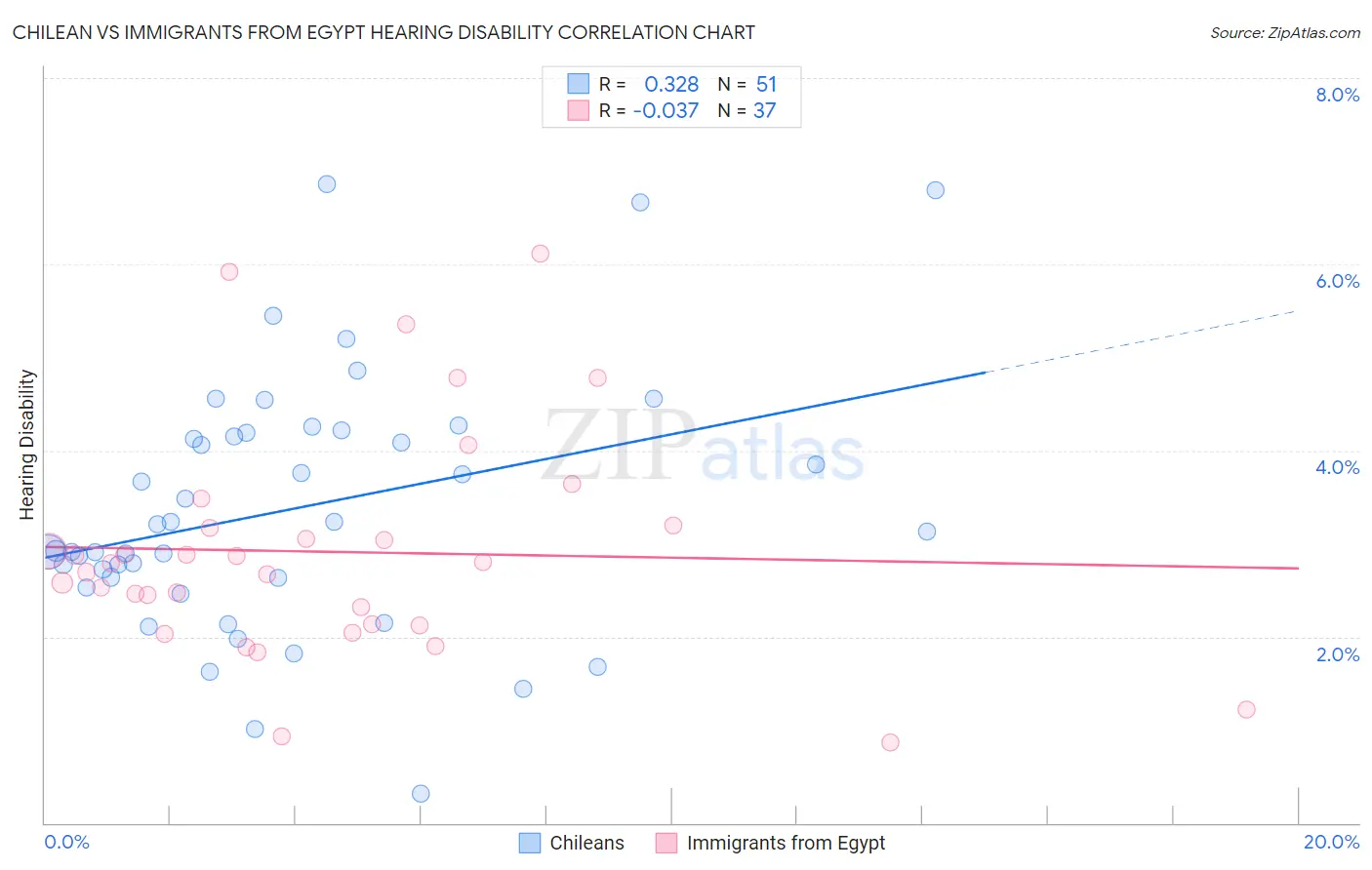 Chilean vs Immigrants from Egypt Hearing Disability Correlation Chart