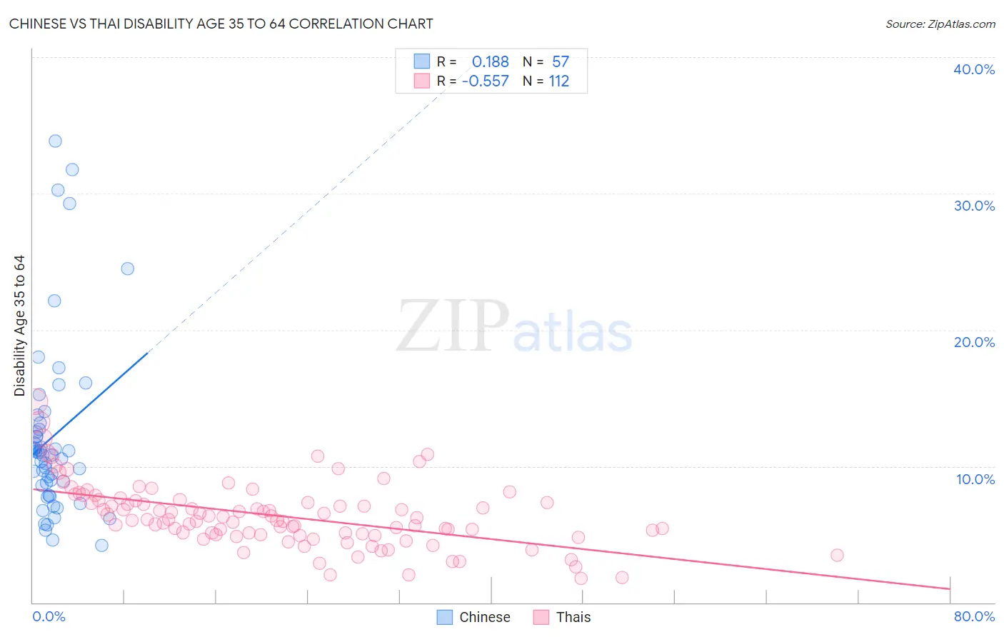 Chinese vs Thai Disability Age 35 to 64 Correlation Chart