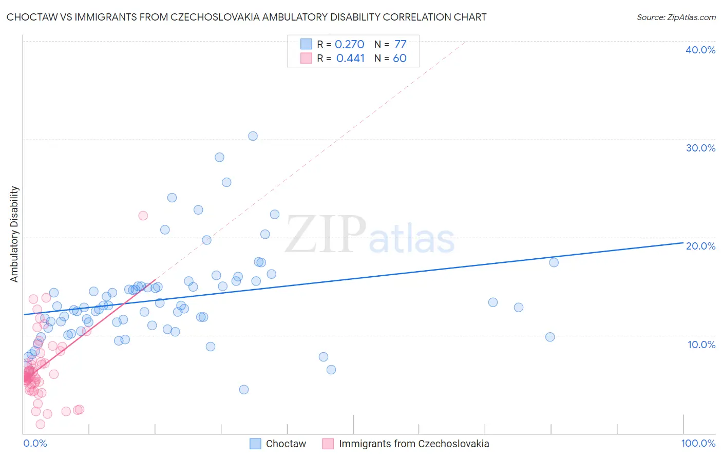 Choctaw vs Immigrants from Czechoslovakia Ambulatory Disability Correlation Chart
