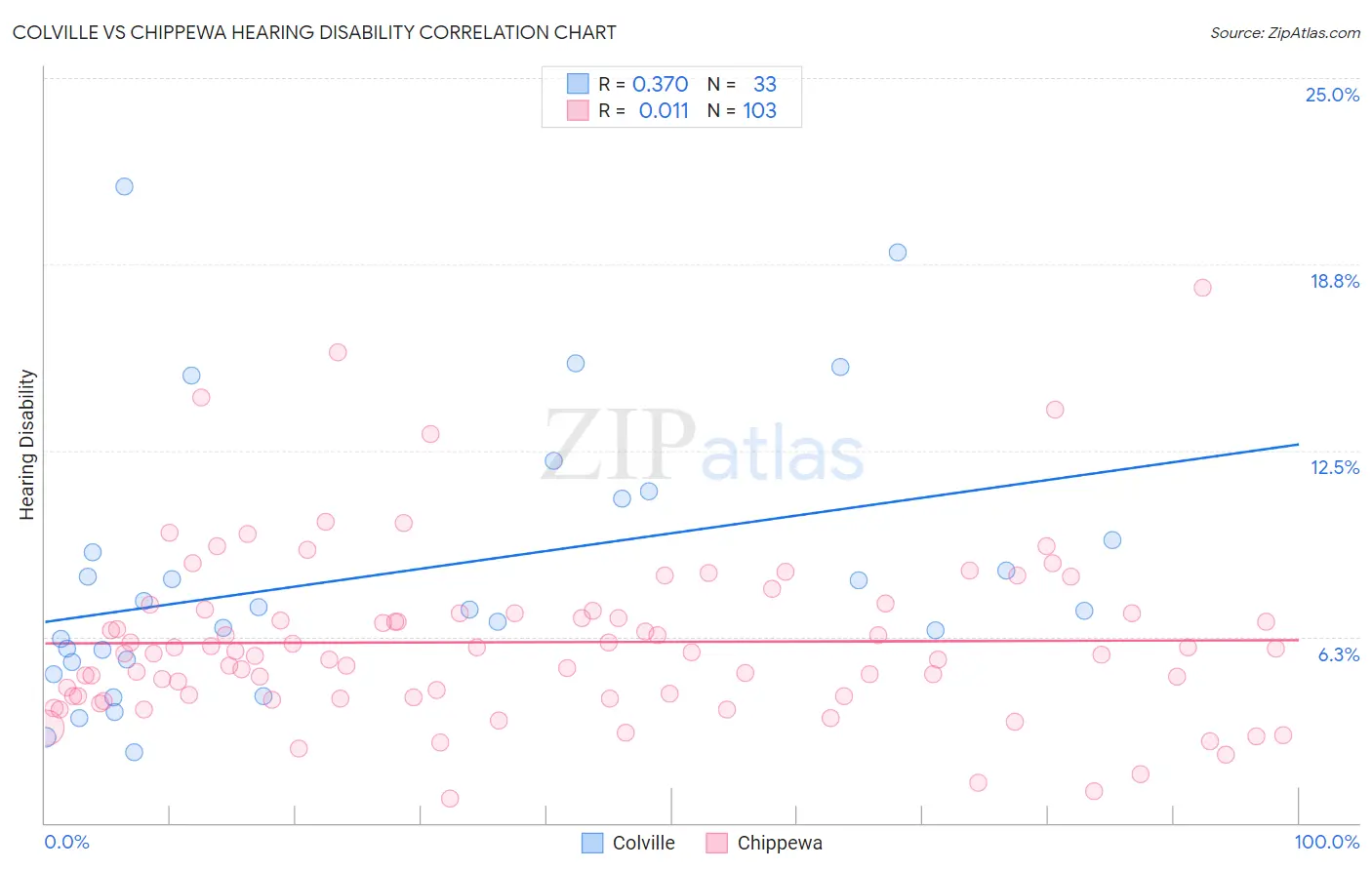 Colville vs Chippewa Hearing Disability Correlation Chart