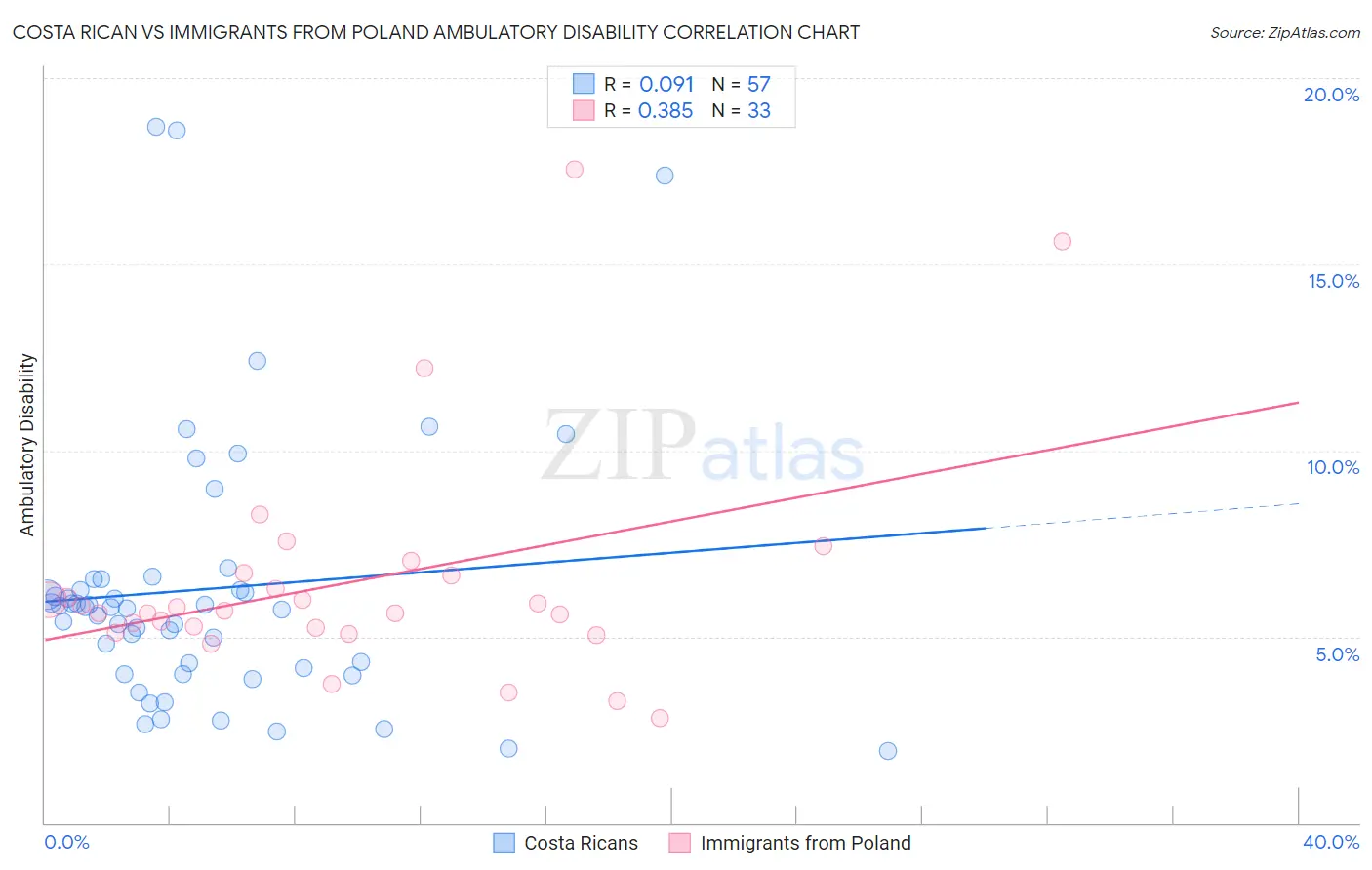 Costa Rican vs Immigrants from Poland Ambulatory Disability Correlation Chart
