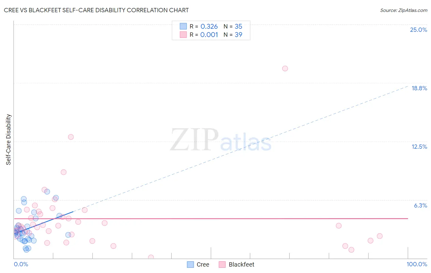 Cree vs Blackfeet Self-Care Disability Correlation Chart