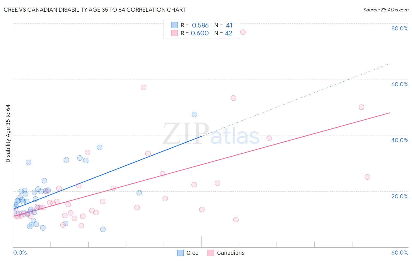 Cree vs Canadian Disability Age 35 to 64 Correlation Chart