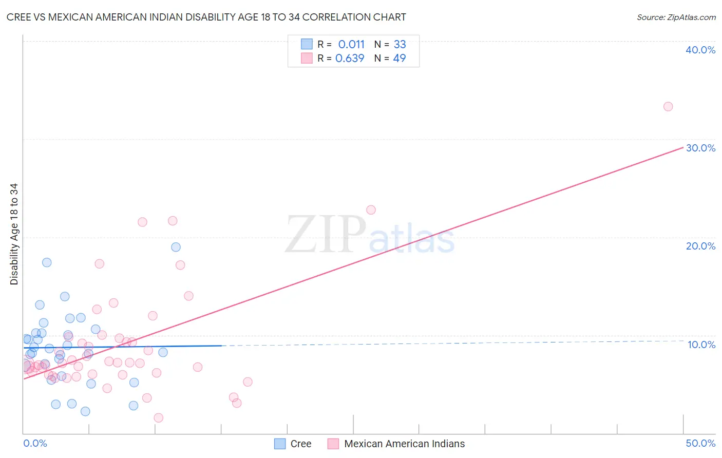 Cree vs Mexican American Indian Disability Age 18 to 34 Correlation Chart