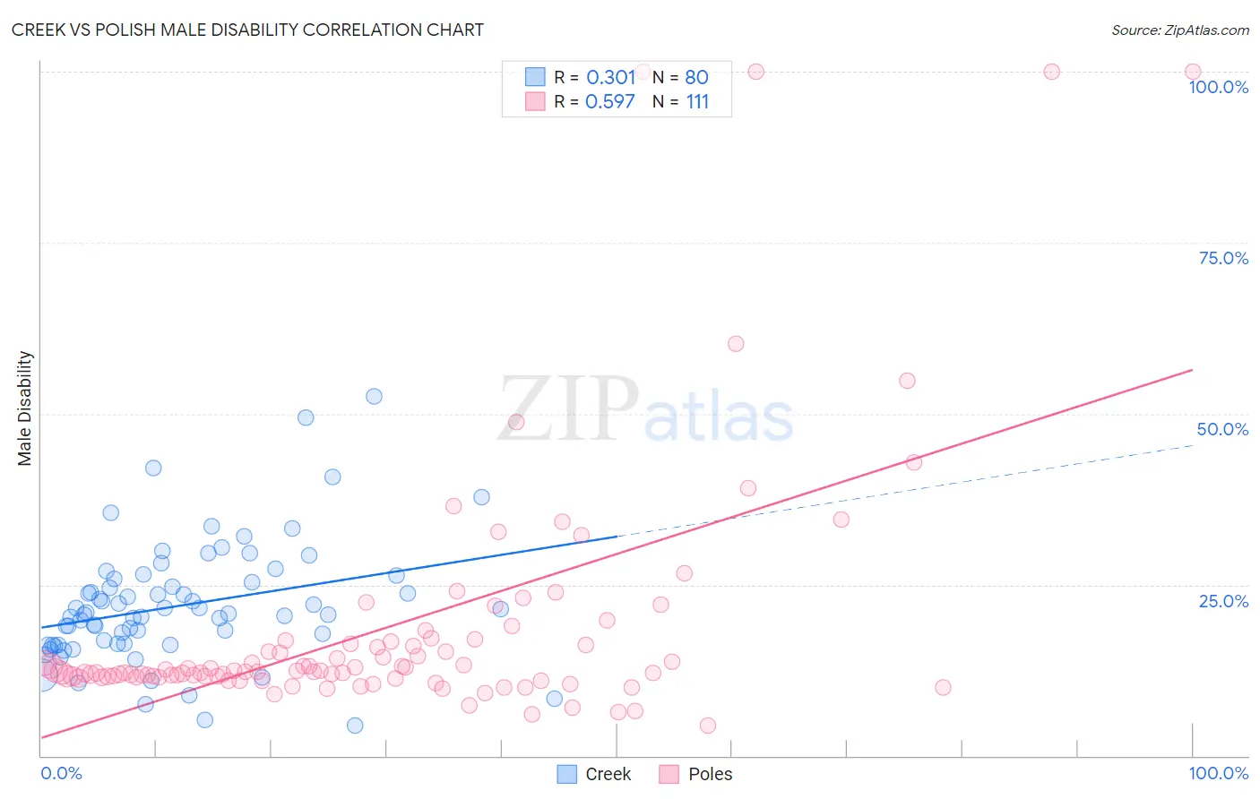 Creek vs Polish Male Disability Correlation Chart