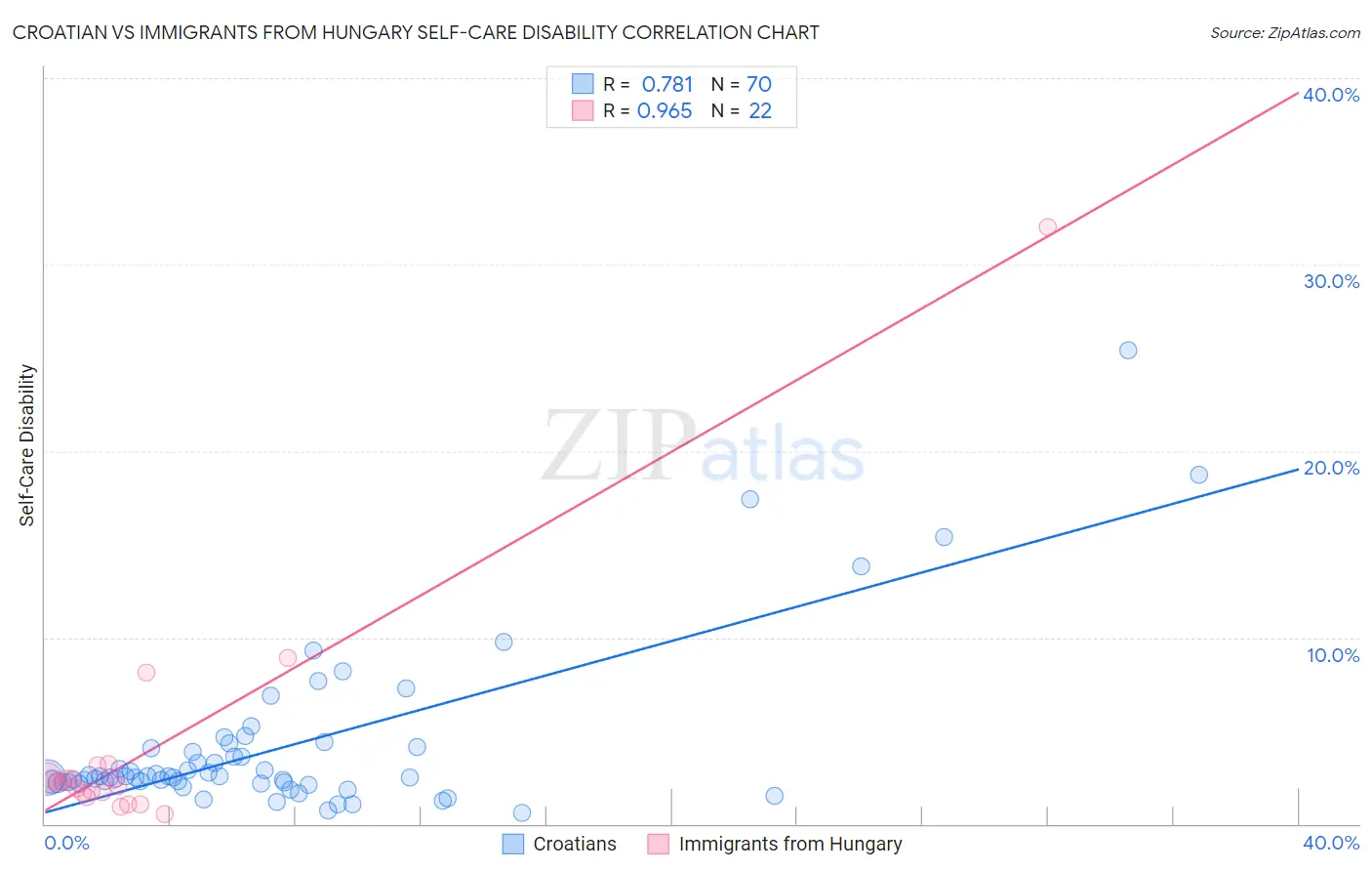 Croatian vs Immigrants from Hungary Self-Care Disability Correlation Chart