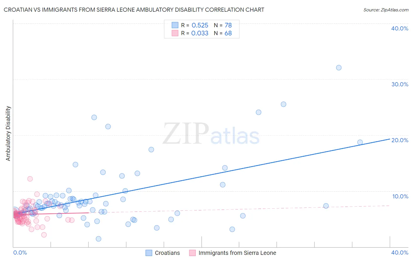 Croatian vs Immigrants from Sierra Leone Ambulatory Disability Correlation Chart