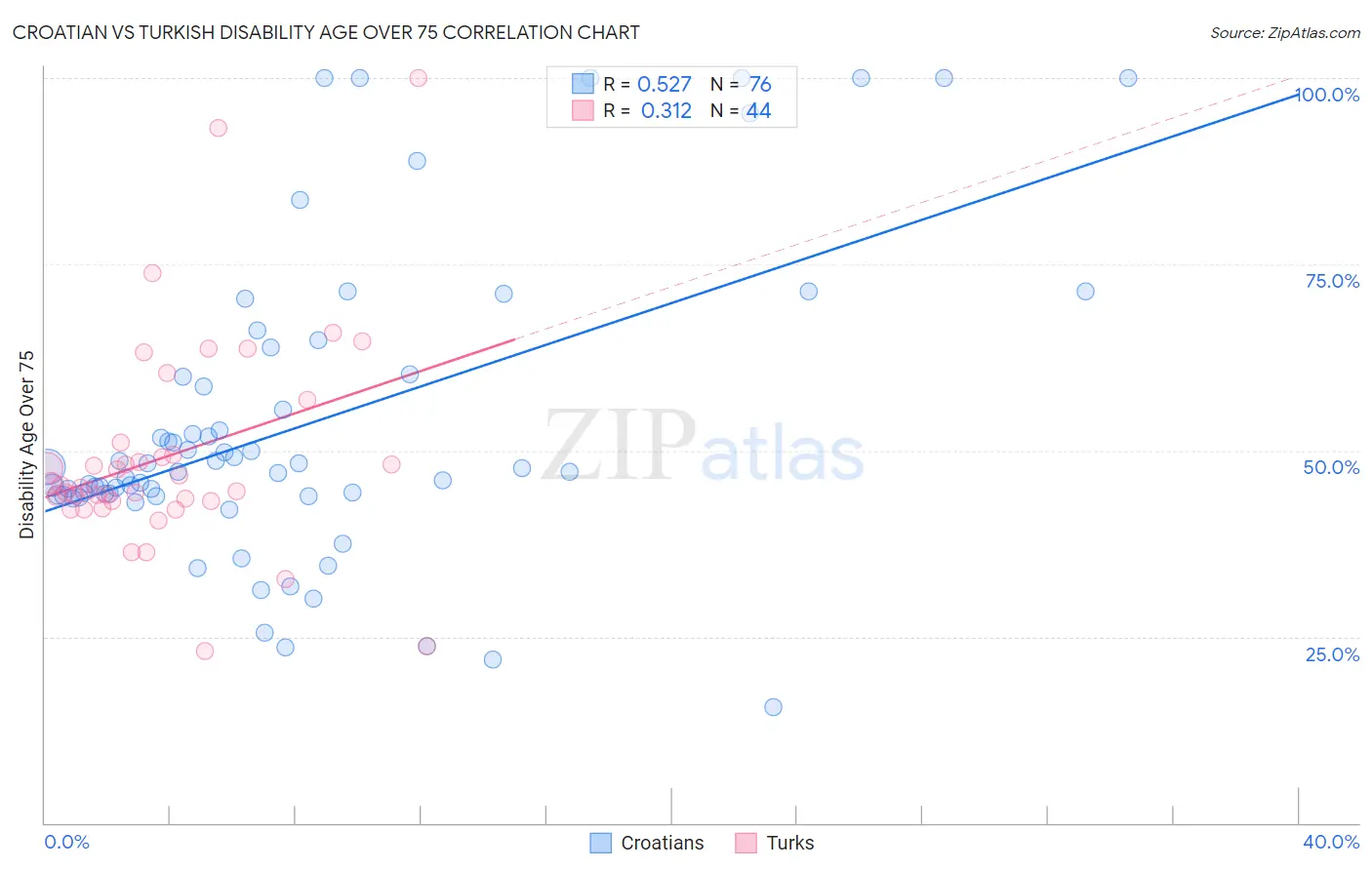 Croatian vs Turkish Disability Age Over 75 Correlation Chart