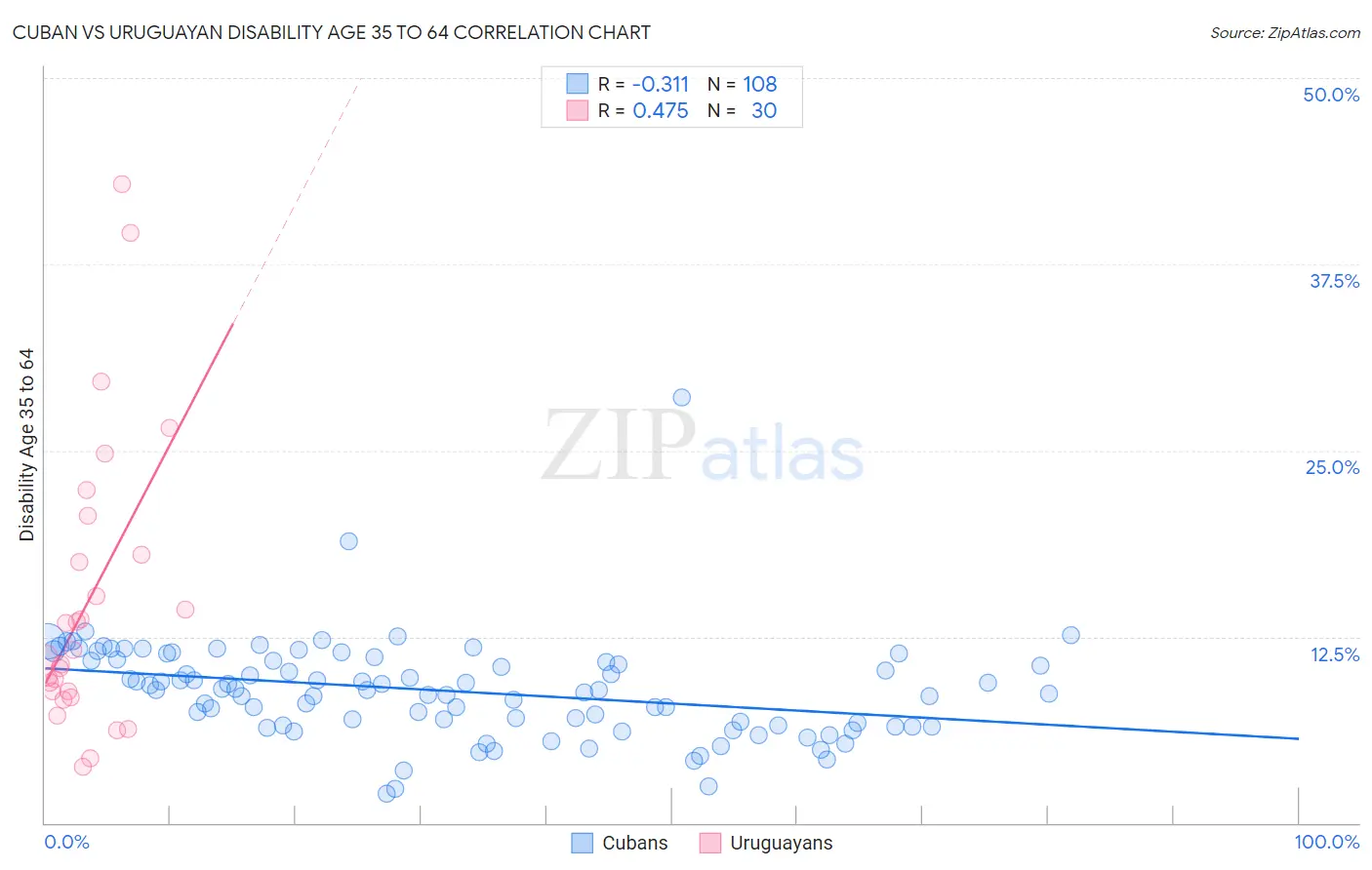 Cuban vs Uruguayan Disability Age 35 to 64 Correlation Chart