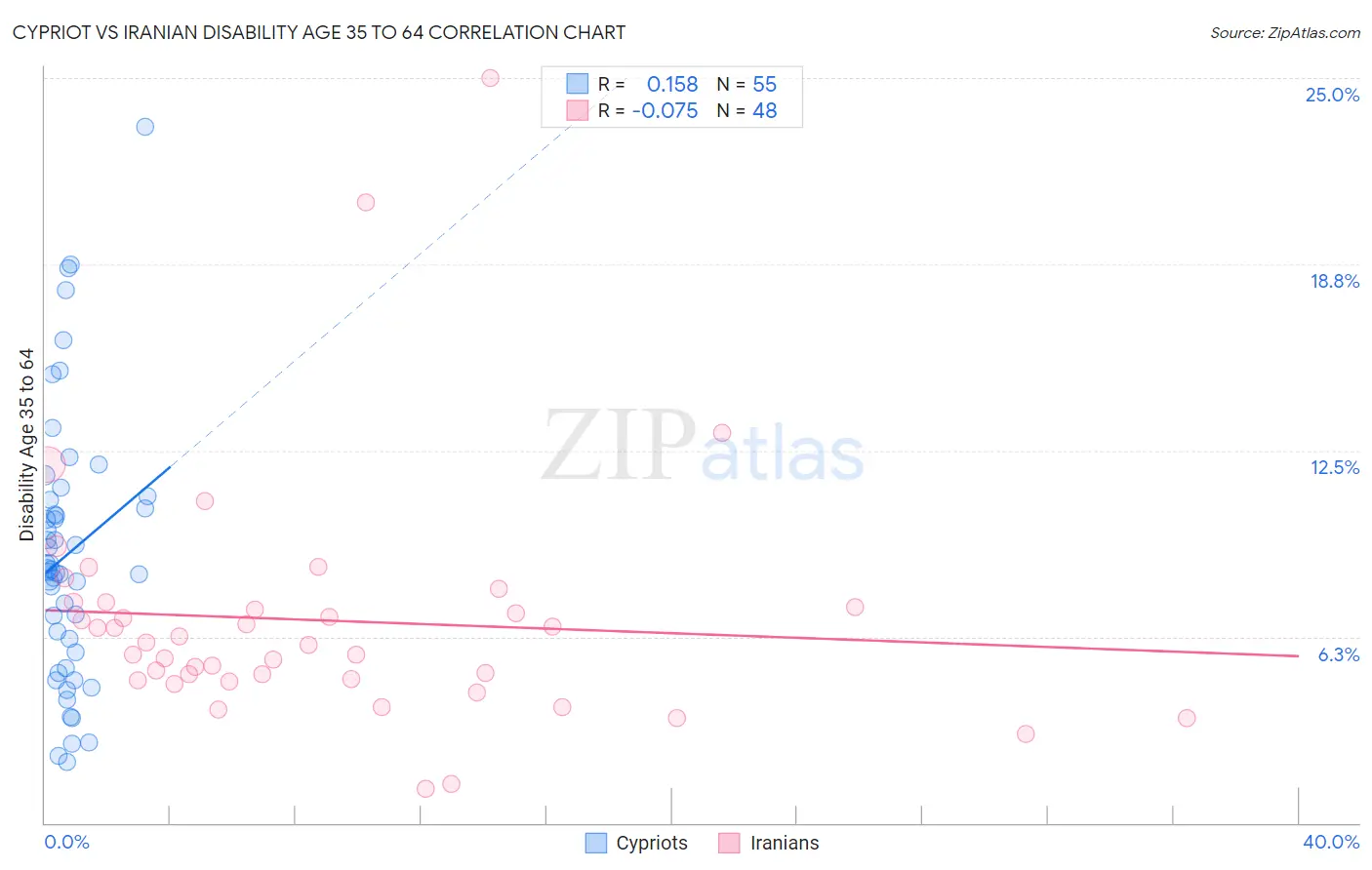 Cypriot vs Iranian Disability Age 35 to 64 Correlation Chart