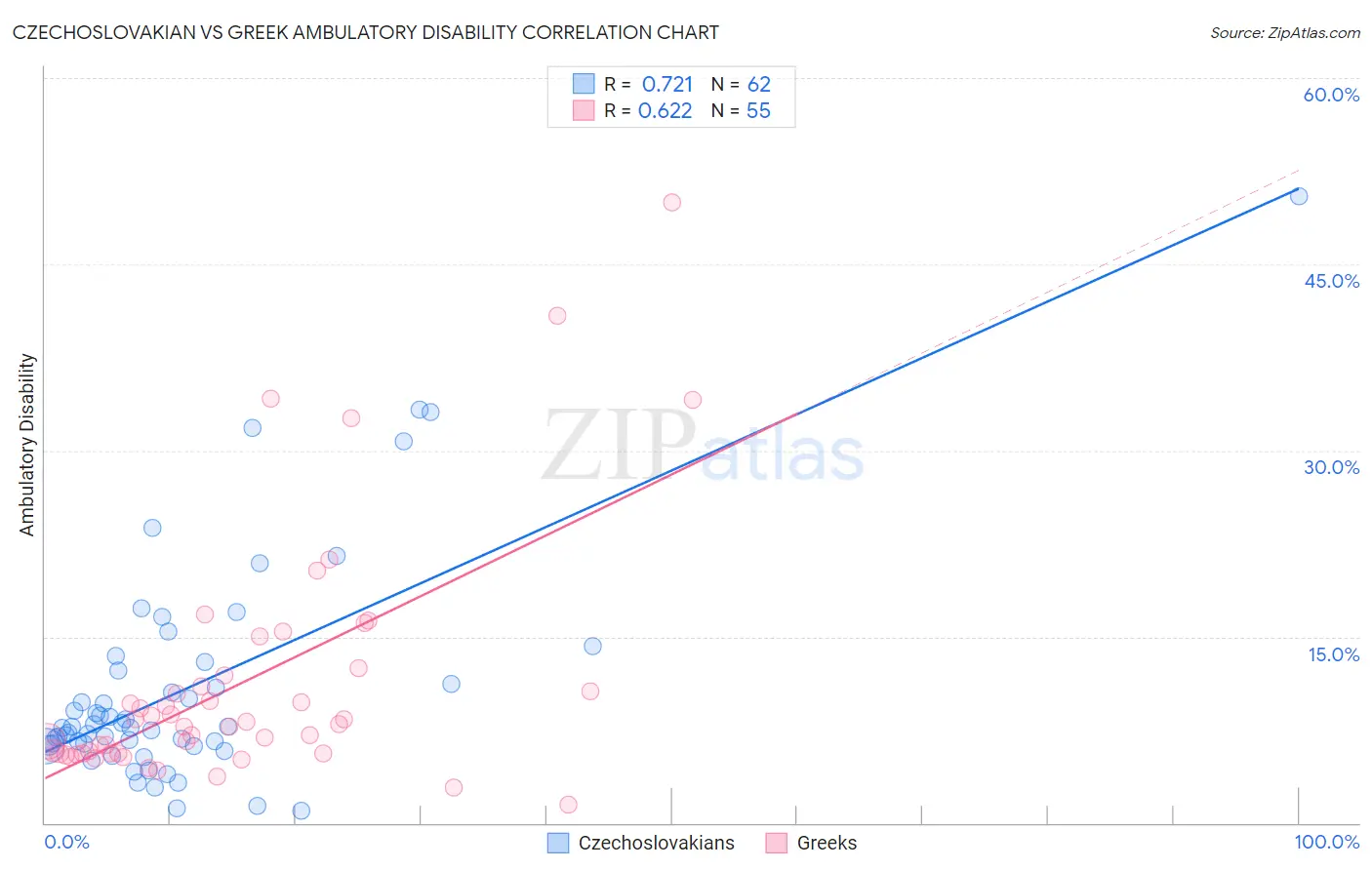 Czechoslovakian vs Greek Ambulatory Disability Correlation Chart