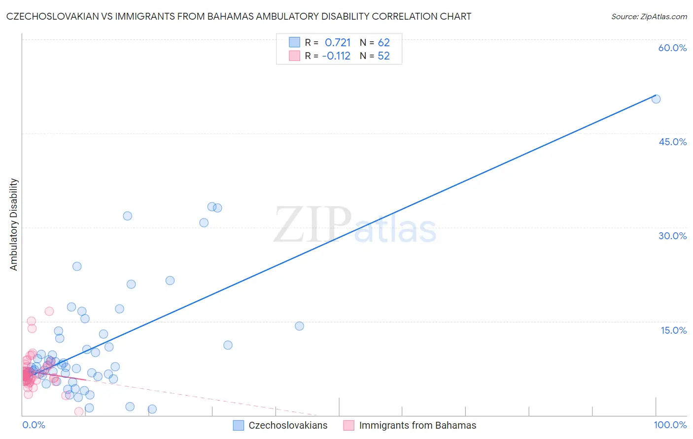 Czechoslovakian vs Immigrants from Bahamas Ambulatory Disability Correlation Chart