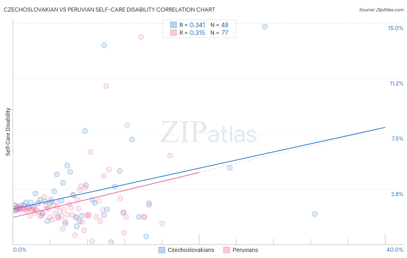 Czechoslovakian vs Peruvian Self-Care Disability Correlation Chart