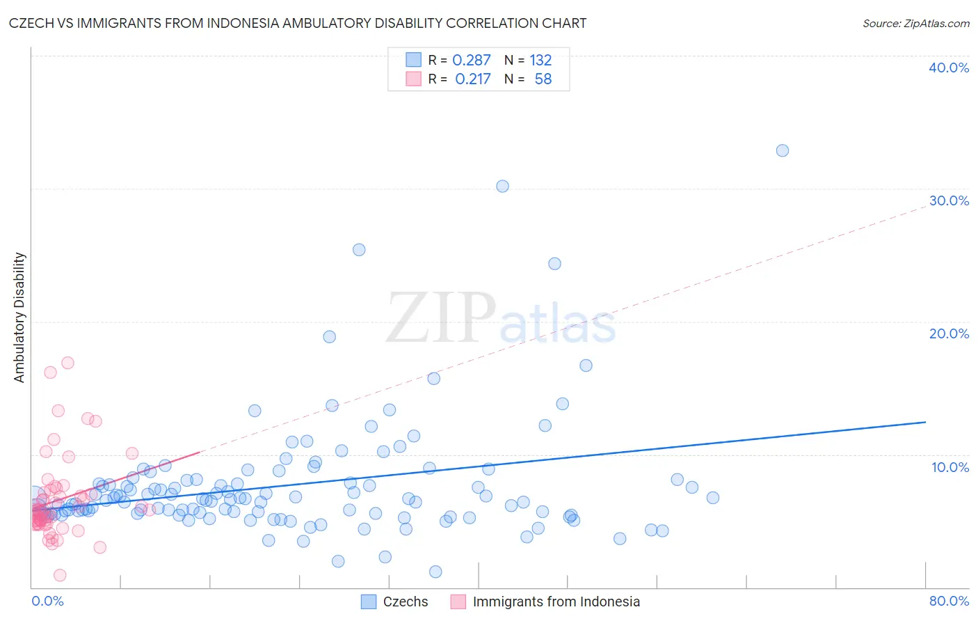 Czech vs Immigrants from Indonesia Ambulatory Disability Correlation Chart