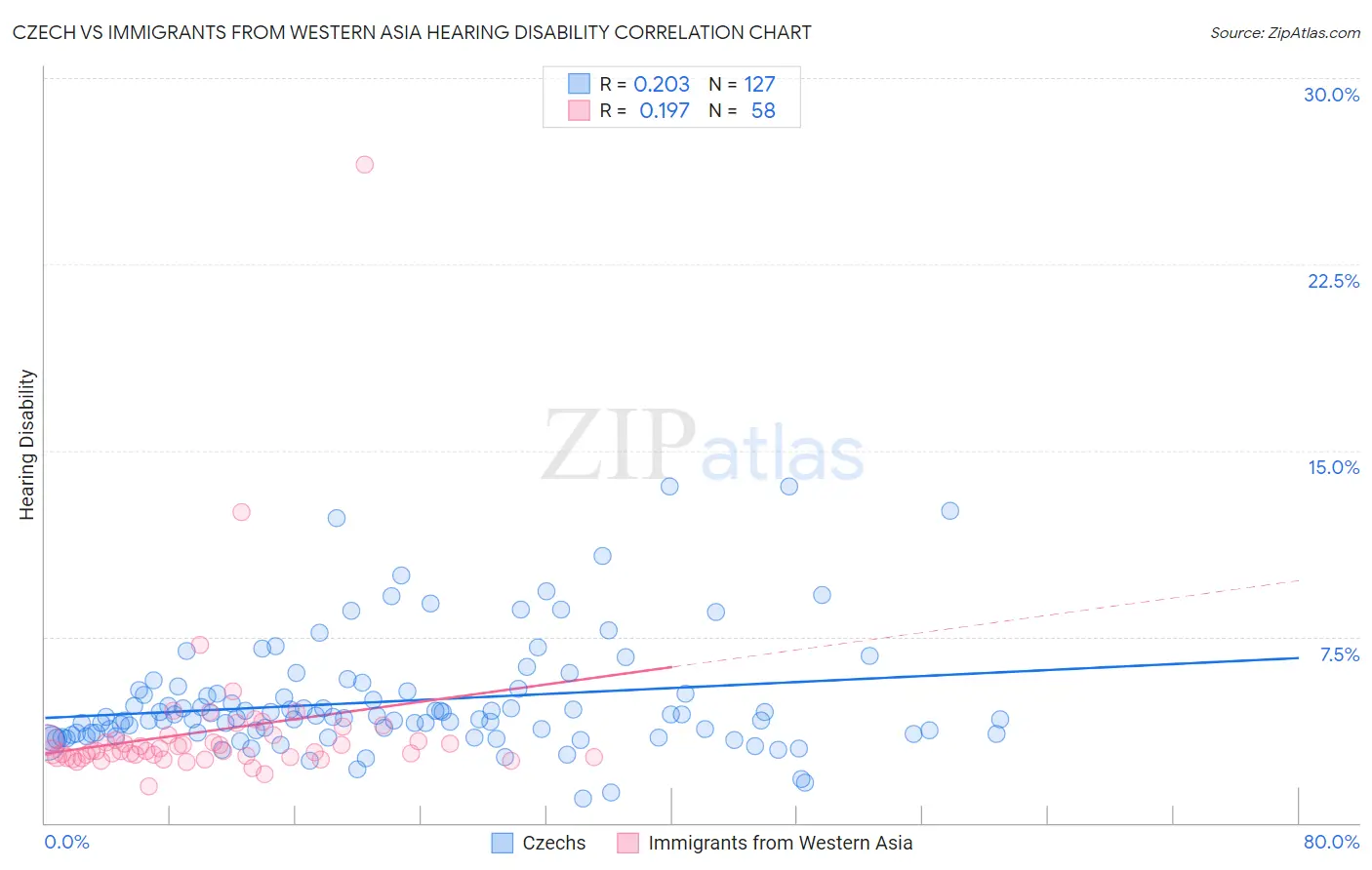 Czech vs Immigrants from Western Asia Hearing Disability Correlation Chart