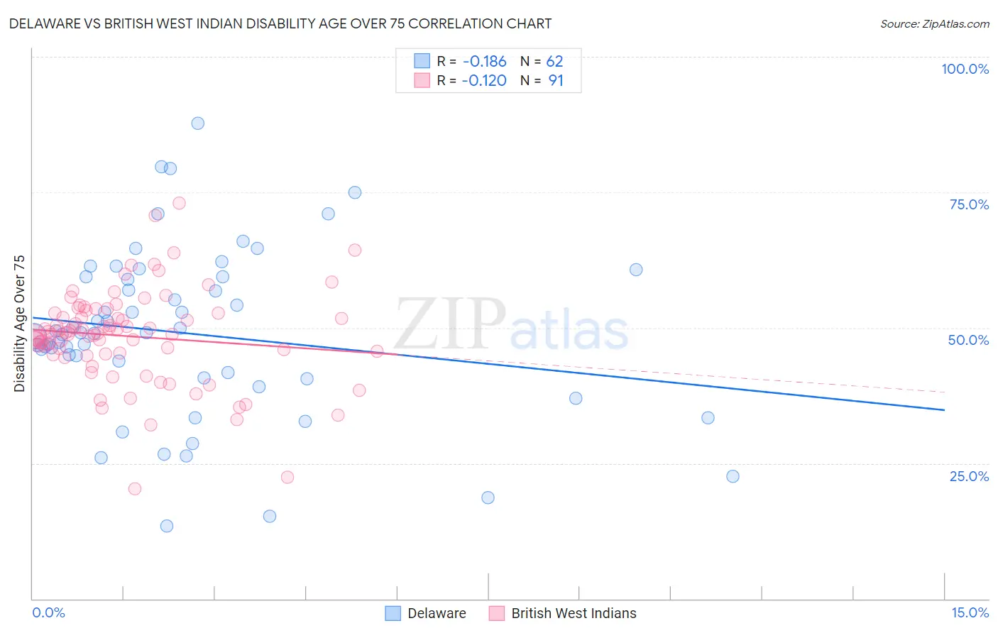 Delaware vs British West Indian Disability Age Over 75 Correlation Chart