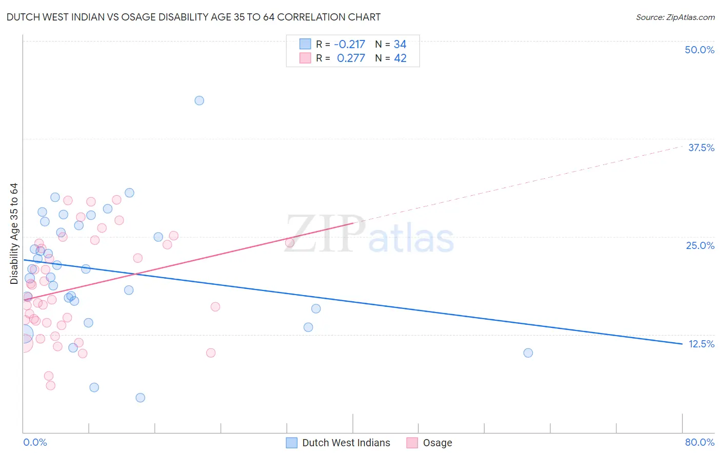 Dutch West Indian vs Osage Disability Age 35 to 64 Correlation Chart