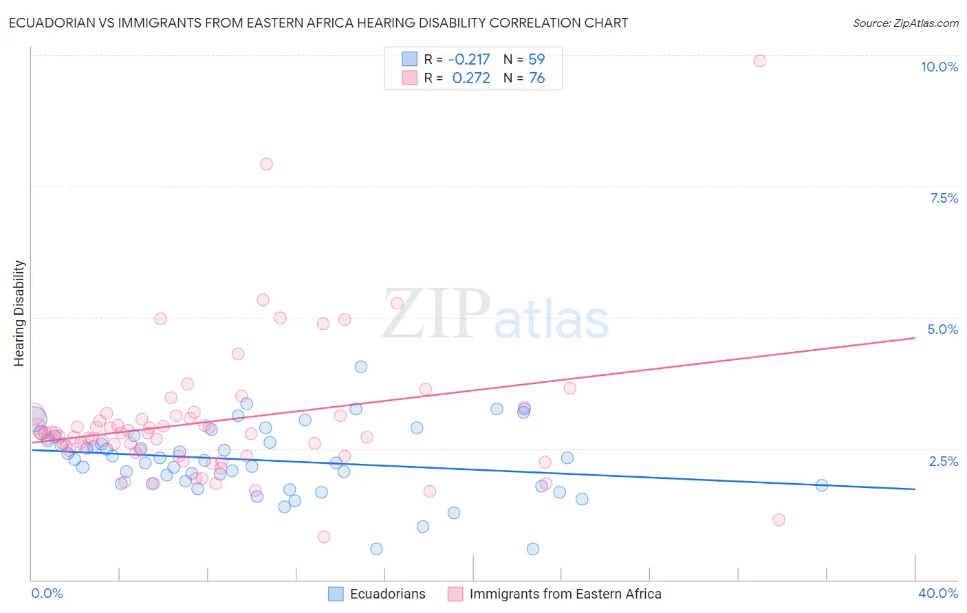 Ecuadorian vs Immigrants from Eastern Africa Hearing Disability Correlation Chart