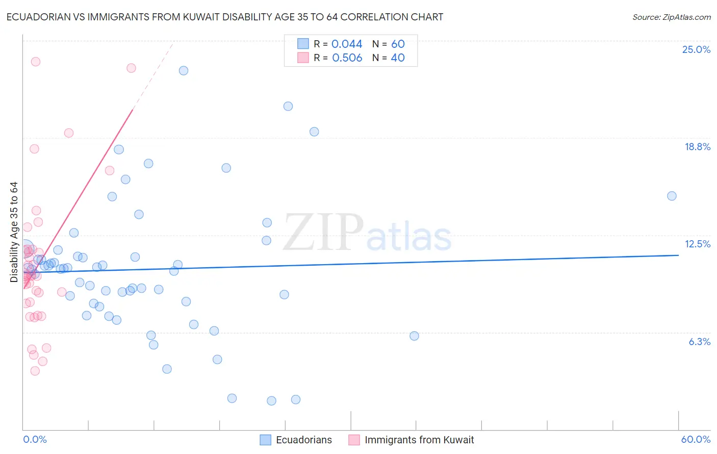 Ecuadorian vs Immigrants from Kuwait Disability Age 35 to 64 Correlation Chart