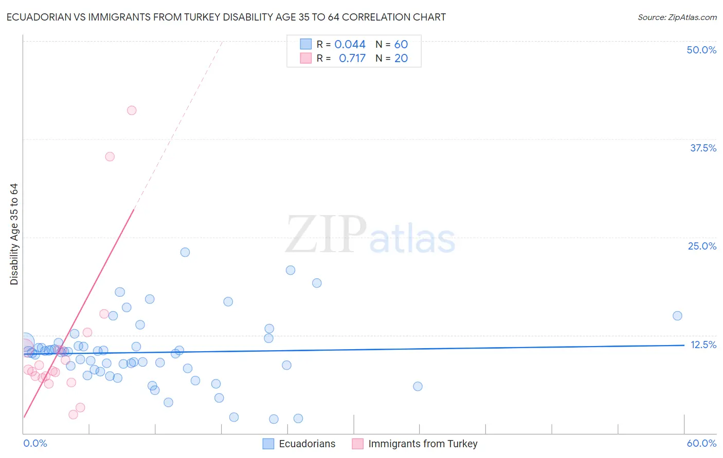 Ecuadorian vs Immigrants from Turkey Disability Age 35 to 64 Correlation Chart