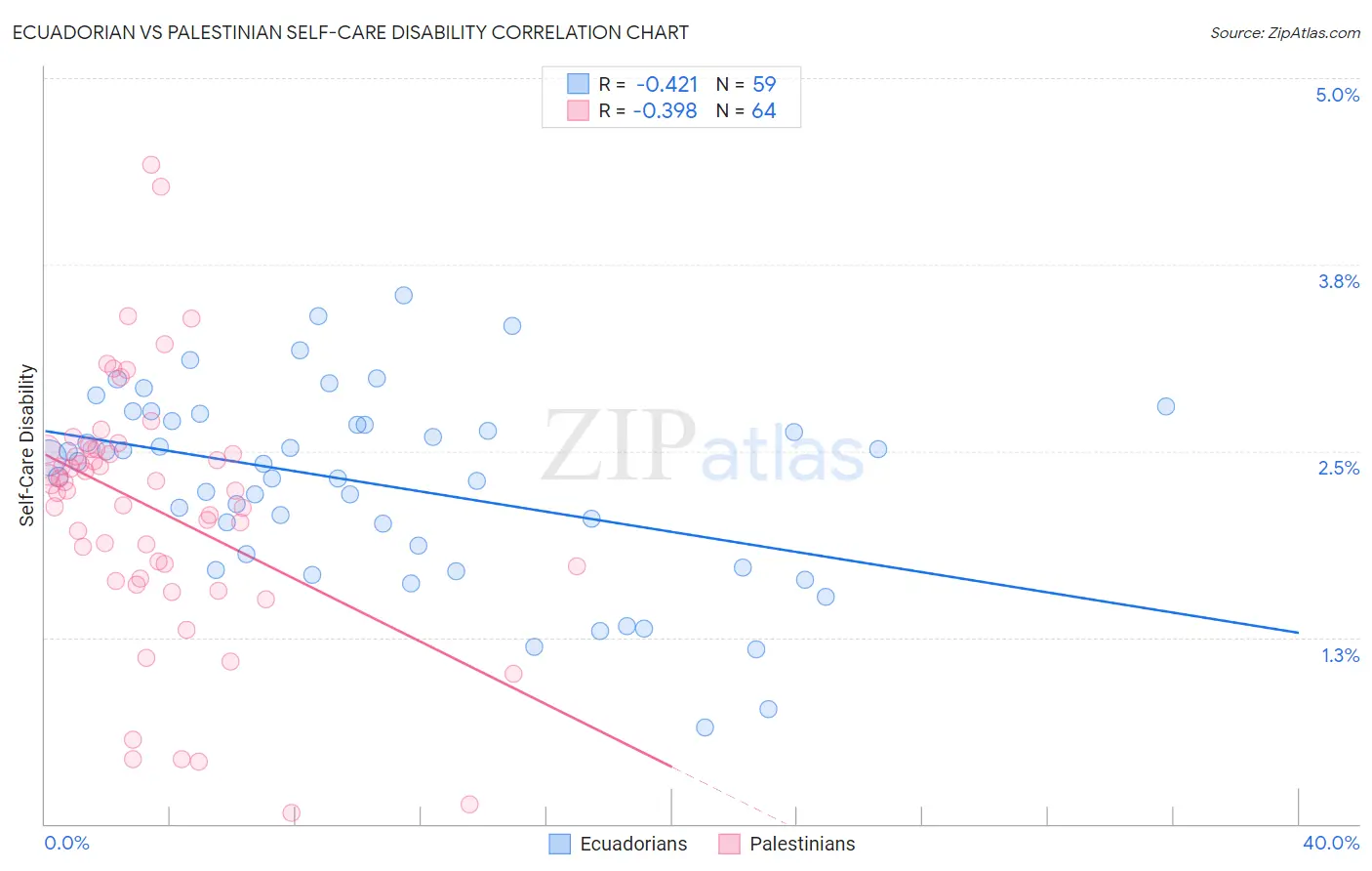 Ecuadorian vs Palestinian Self-Care Disability Correlation Chart