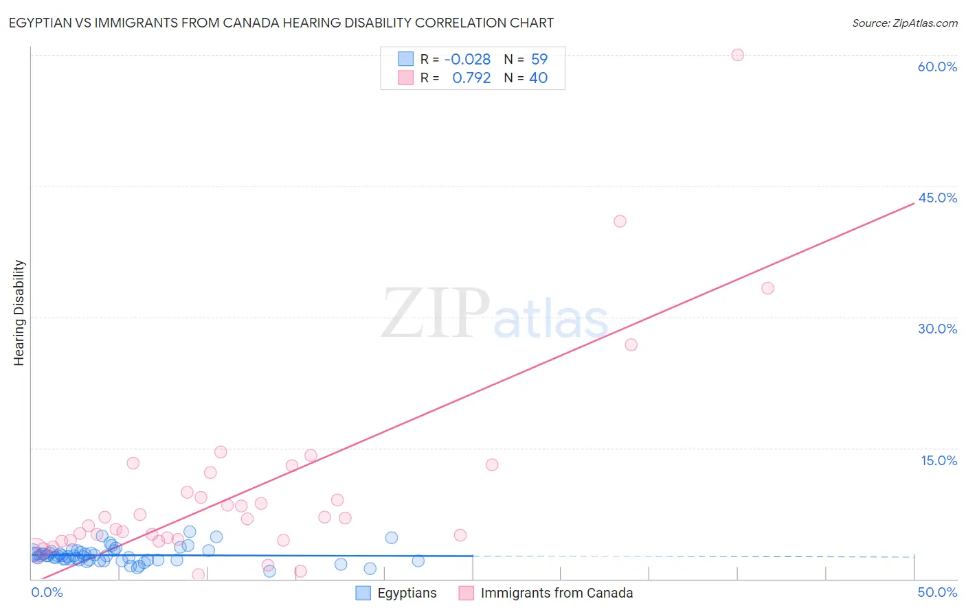 Egyptian vs Immigrants from Canada Hearing Disability Correlation Chart