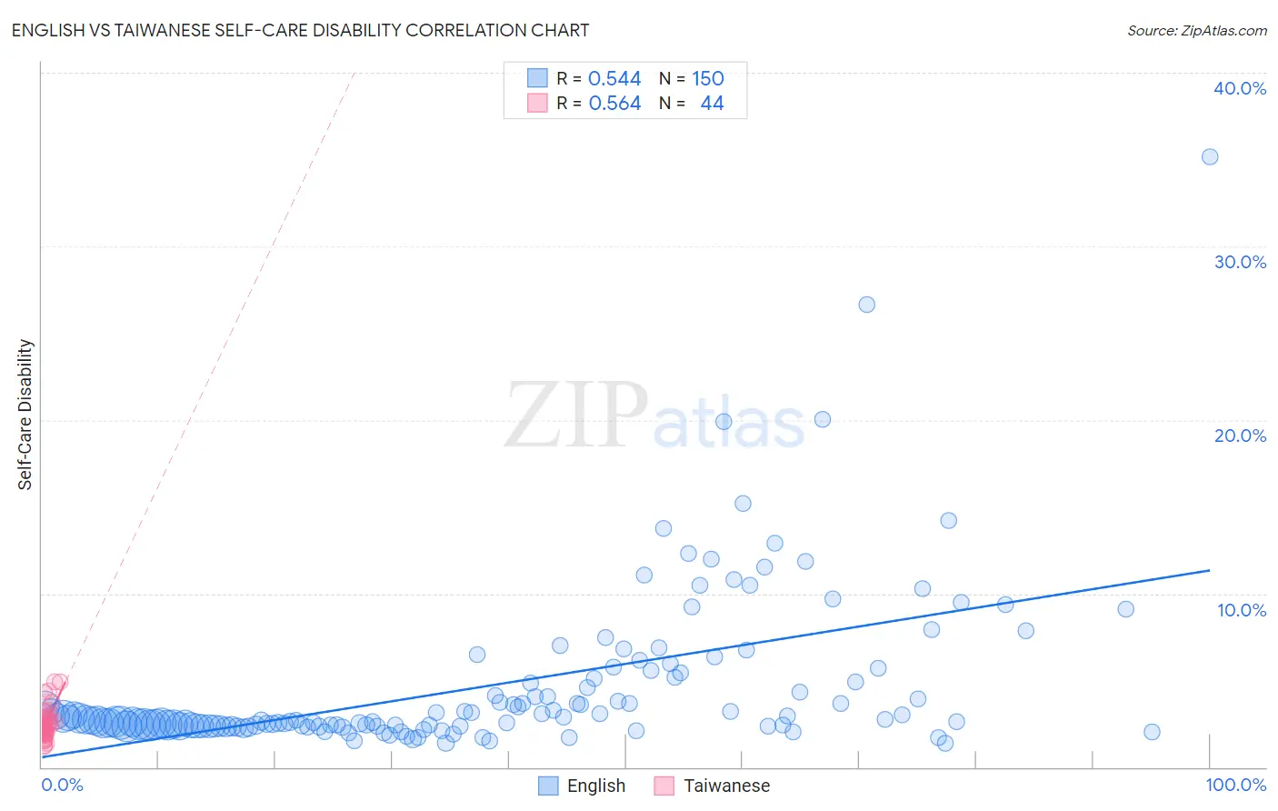 English vs Taiwanese Self-Care Disability Correlation Chart